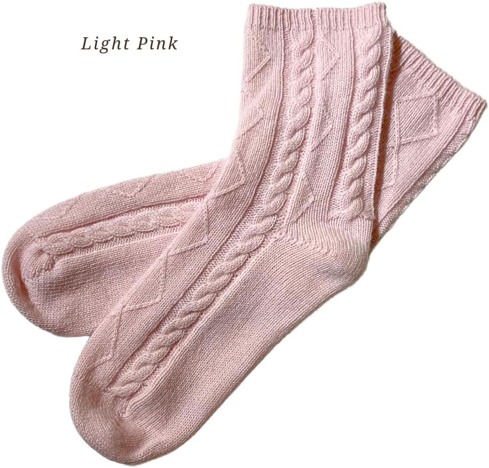 The ULTIMATE luxury for your feet. The softest socks you will ever feel made from recyeld 100% inner mongolian cashmere. Ideal while you are on the move or at home. 110 grams of sumptuously soft pure cashmere in 7-gauge knit Cable knit detailing. Ribbed-knit trim. Hand Wash or Dry Clean Only. Fits US womens shoe sizes 5-10.