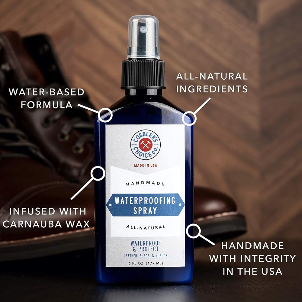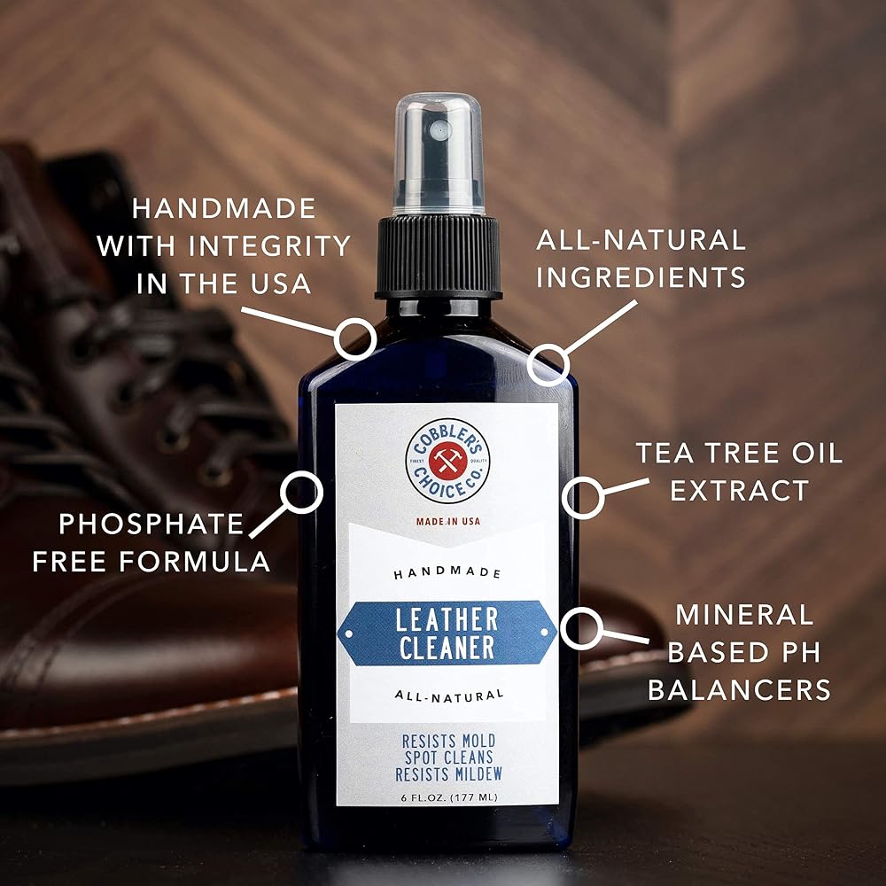 Includes: Cobbler's Choice Leather Cleaner, Cobbler's Choice Suede Brush & Eraser, and the Cobbler's Choice Waterproofing Spray!