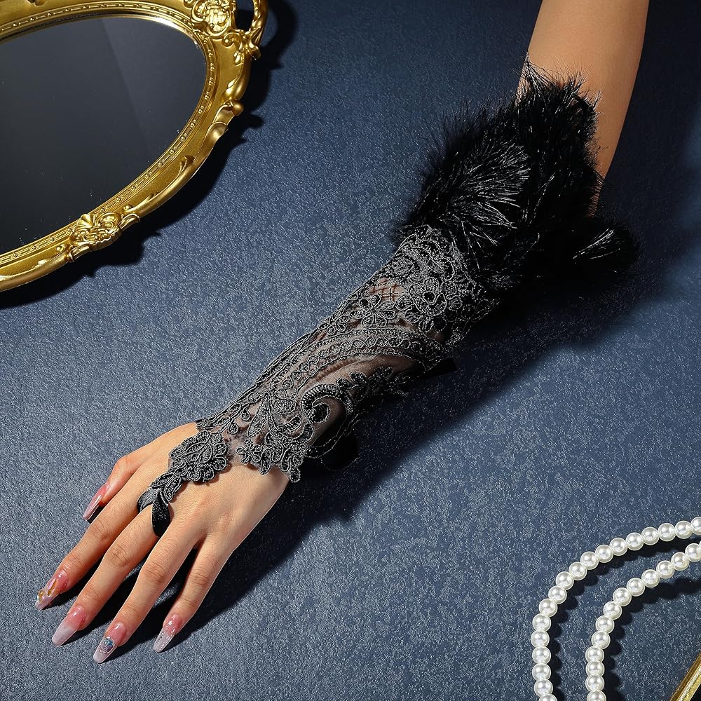 Feather lace long glove are handmade with natural feathers and lace,lightweight and breathable, and unique design will make you stand out.which features silky and smooth,It's not easy to deform.