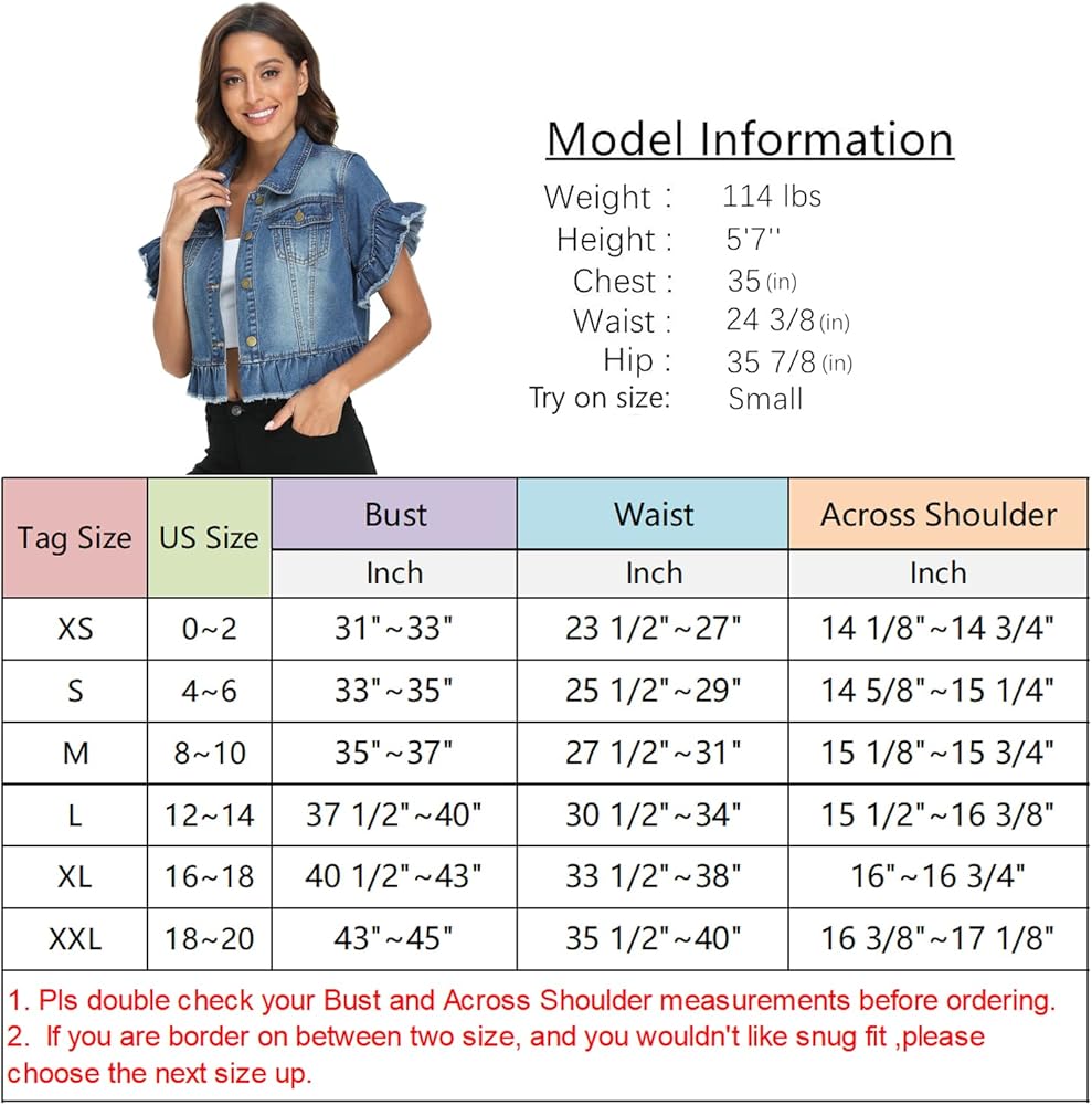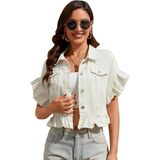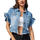 MISS MOLY Women's Denim Jacket Ruffle Sleeve Button Down Distressed Summer Cropped Jean Jackets