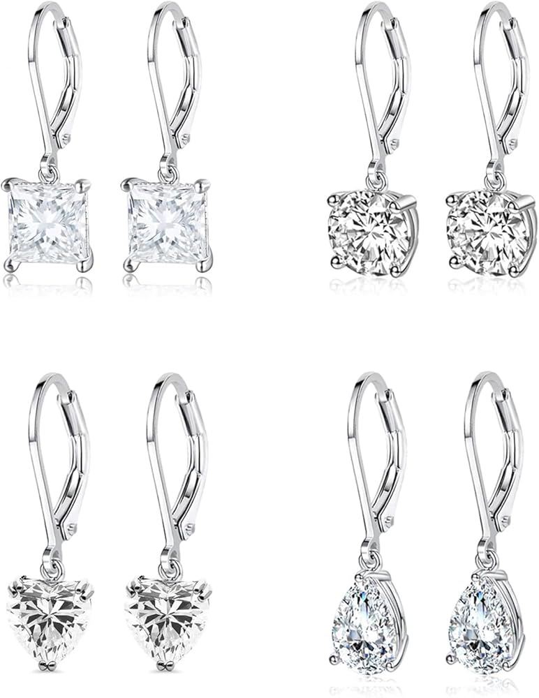 Sterling silver plated cubic zirconia dangle earrings set :5A high quality cubic zirconia dangle and drop , leverback design ,four different shape cubic zirconia and stud earring, 8 pair , super worthy to buy!