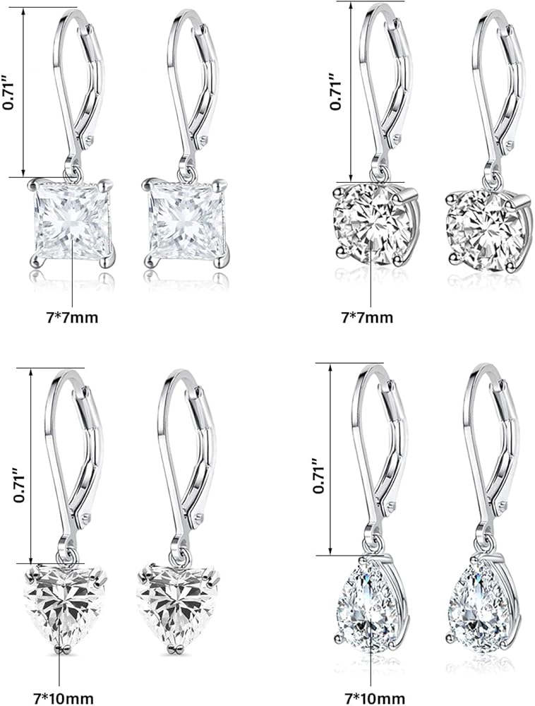 Dangle earrings for women multipack: The total size:0.25 inches, sterling silver plated leverback clasp ,lightweight, comfortable to wear.