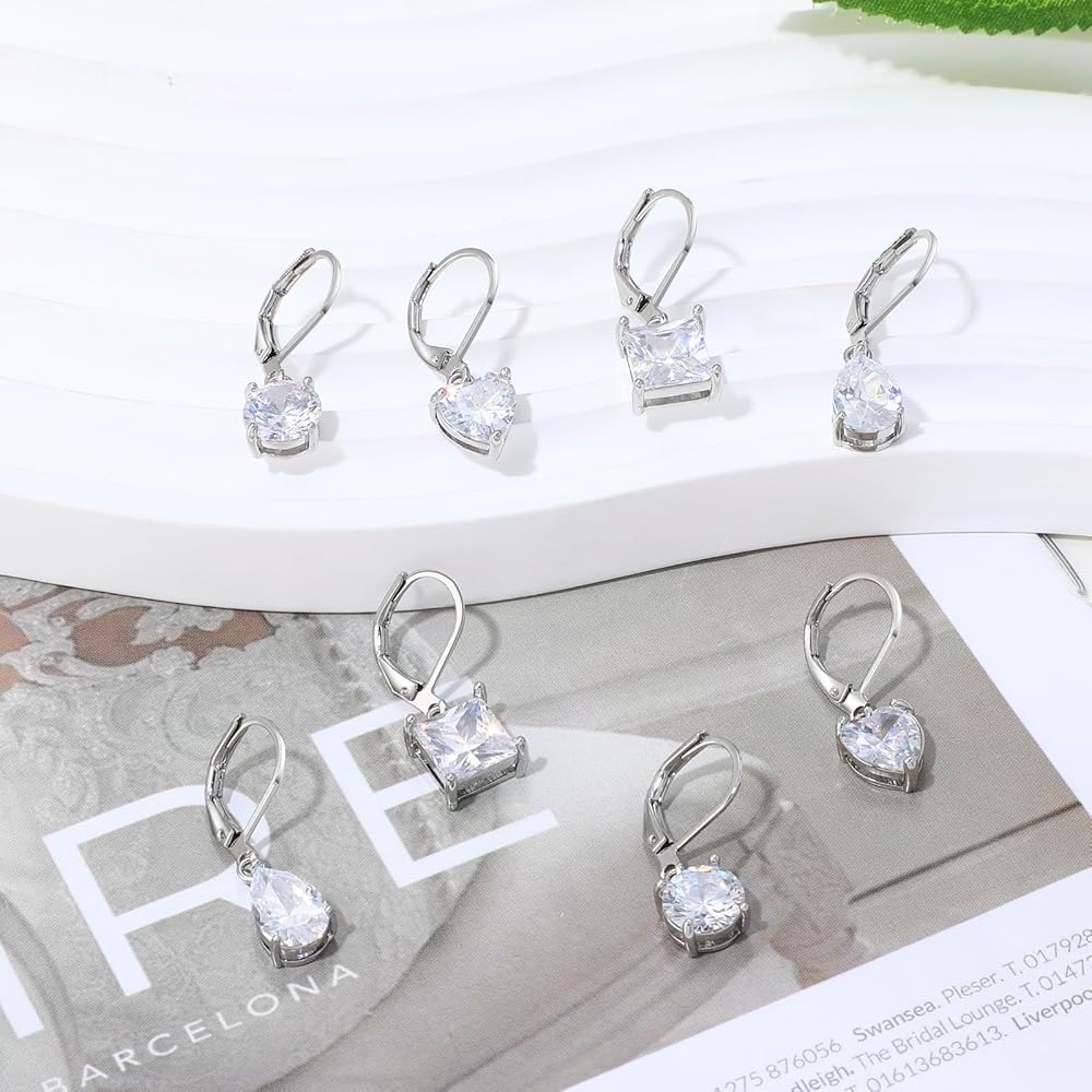Silver cubic zirconia drop earrings for women : Super shiny cubic zirconia, 925 sterling silver post leverback , hypoallergenic.
