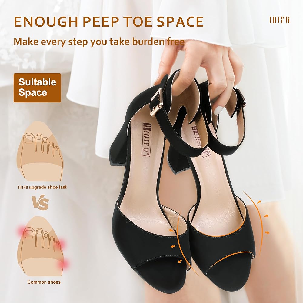 ALL-DAY WITH NO DISCOMFORT: Newer style of the IN2 Candie. The back of the shoes which connecting with the ankle strap is specially designed for comfortable wear, it won't hurt the back or sides of your ankle; Also the sandals are particularly different in their lightly cushioned footbed, ultra-soft lining and durable outsole; You can wear the heels all-day long with no discomfort.