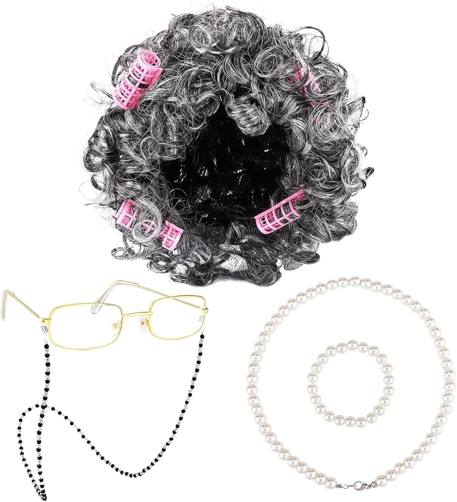 Package contents: you will receive 1 old lady wig set containing 1 dark gray curly wig, 6 pink curling irons, 1 pair of square-framed glasses, 1 eyeglass chain, 1 imitation pearl necklace, and 1 pearl bracelet, this set of accessories is complete, you do not need to bother to mix and match, with this set, you can satisfy your cosplay decoration needs