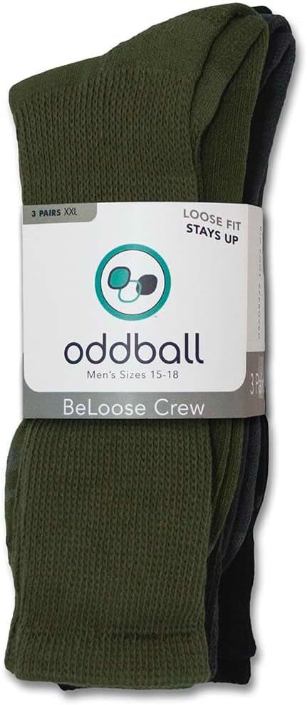 The BeLoose Crew Sock features true stay-up power without binding. Perfect for those needing a looser fit sock that doesn't constrict. Easy on, easy off. Soft cotton. XXL fits men's shoe sizes 14-18