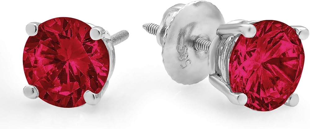 14K White Gold Earring Set for Women | Screw back Studs | 2 ctw 6.5mm Round Cut Natural Garnet