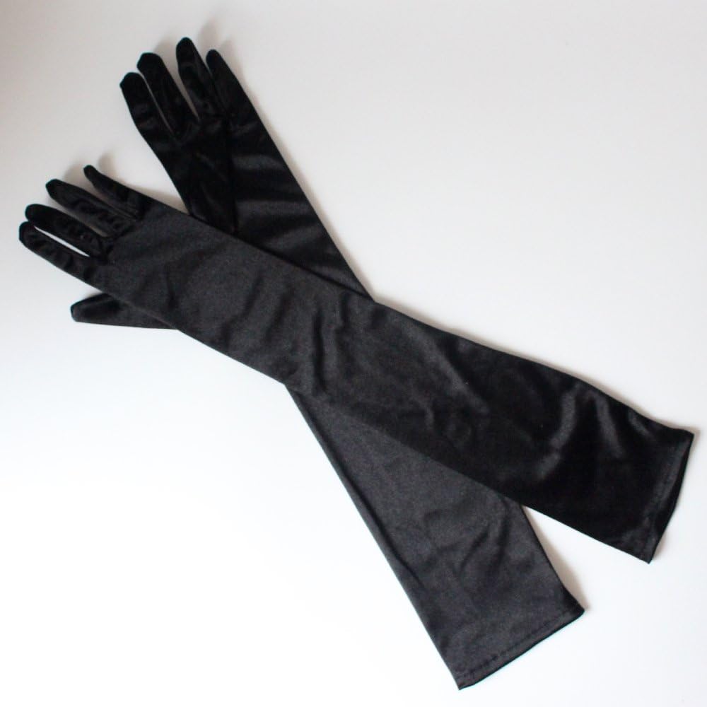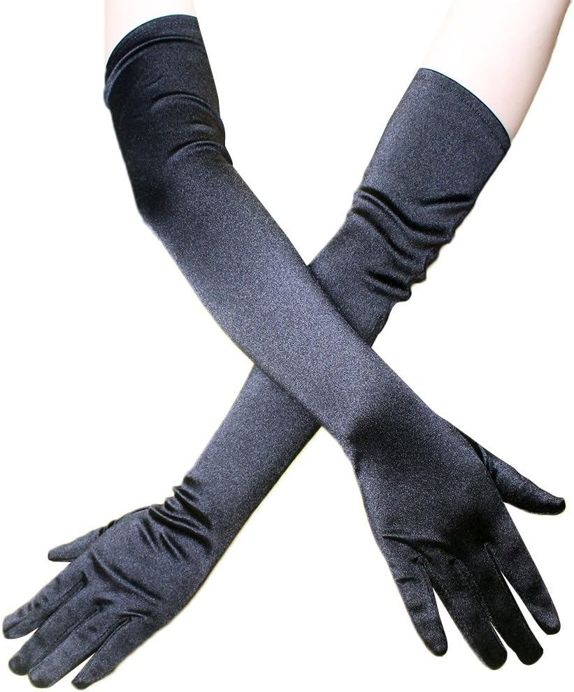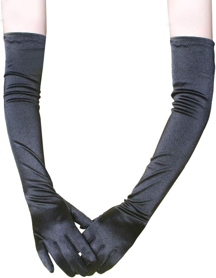 Ladies Elbow Length 21" Long Satin Gloves Evening Party Stage 1920s Gloves Adult Size (Black)