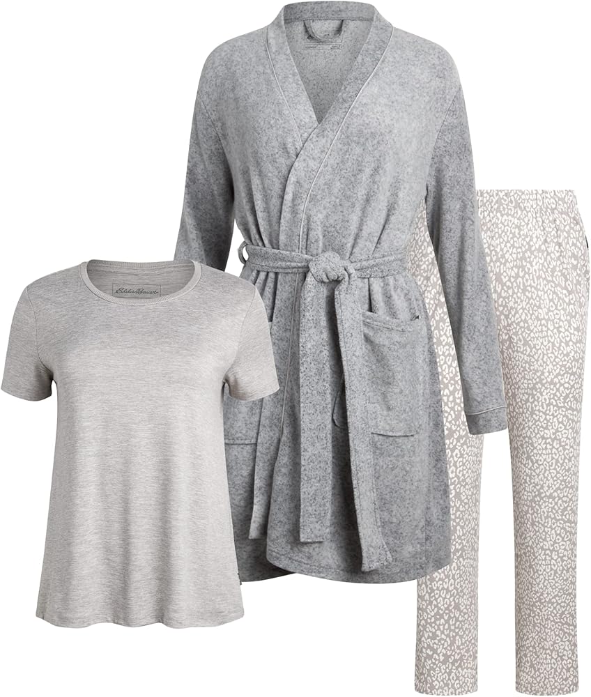 LUXURIOUS COMFORT: Indulge in ultimate relaxation with our Eddie Bauer 3-Piece Comfy Pajamas for Women Set. Crafted from a blend of 95% Poly and 5% Spandex, these pajamas offer a heavenly soft touch and a cozy fit, making them perfect for lounging and unwinding after a long day.