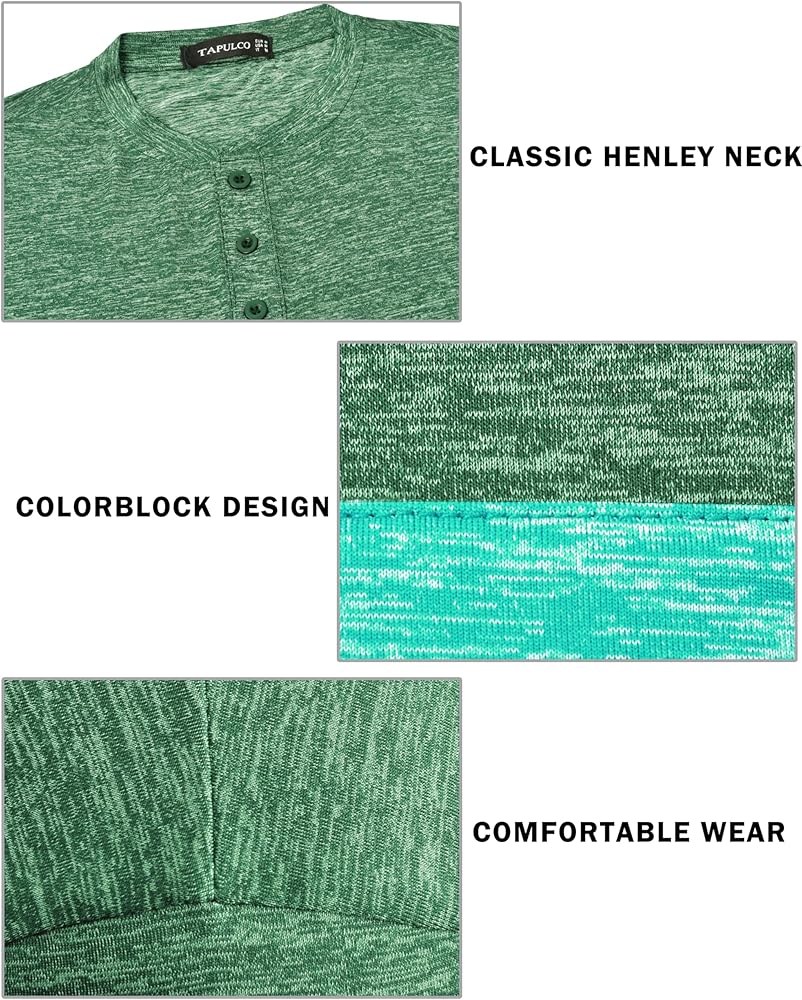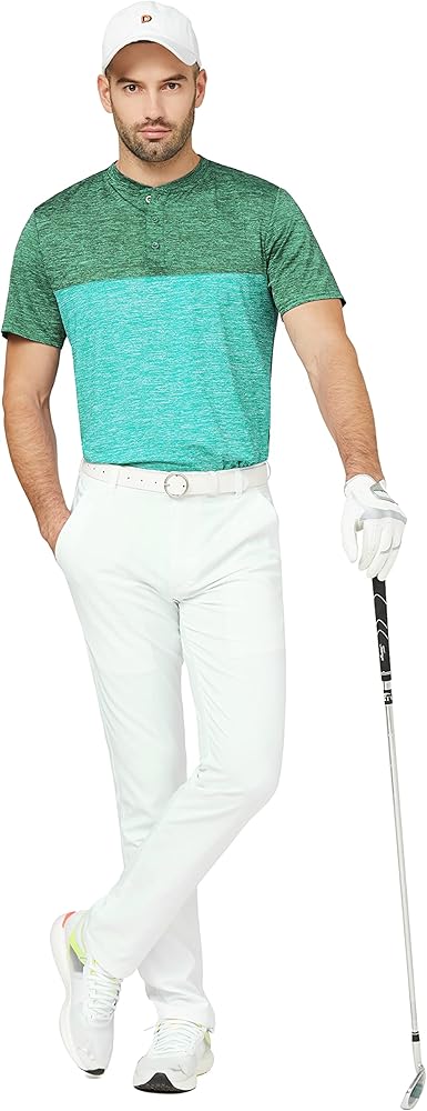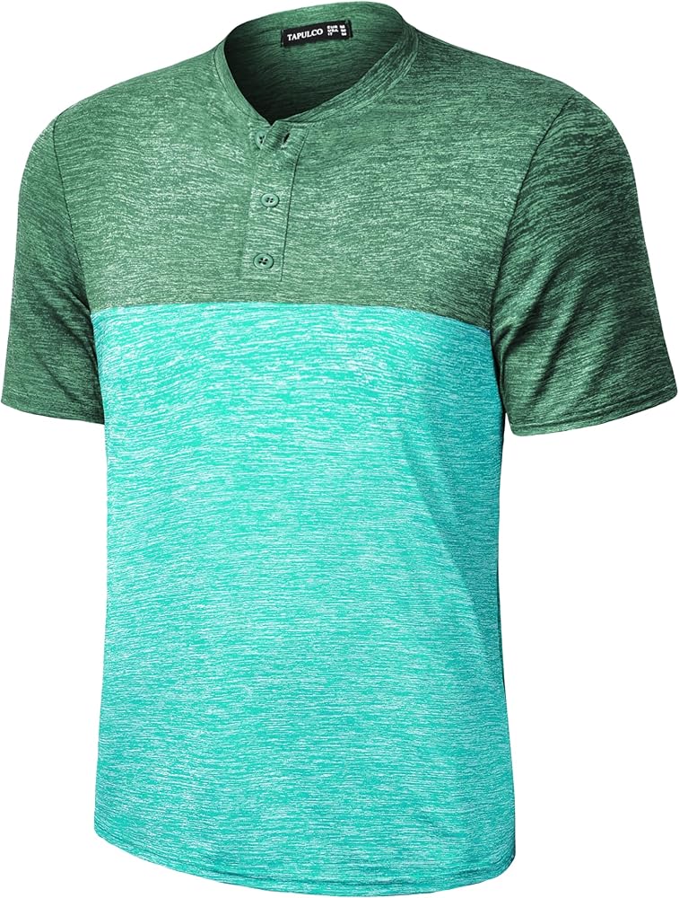 Features: Modern Color Block Design/ Summer Short Sleeve Collarless Golf Polo Shirts/ Classical 3 Buttons Placket/ Sweat-Wicking Technology/ Athletic Cut/ Henley Collared Polo/ Active Sports Tshirt/ Men's Sports Short Sleeve T-shirt/ Mens Basic Versatile Shirt