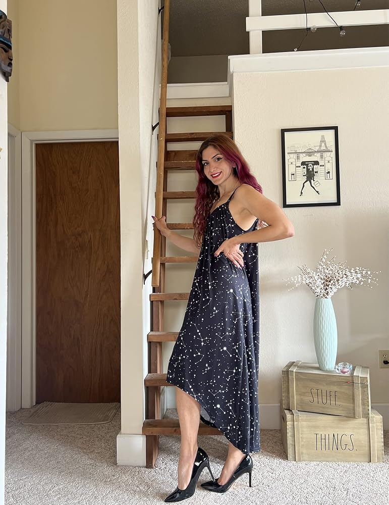 【Soft and Comfy Nightgown】: Made of high-quality 95% rayon and 5% spandex, the nightdress is cool and breathable, very skin-friendly, and does not wrinkle as much as 100% cotton nightgown may do, just like sleeping on a cloud, it will make you sleep better