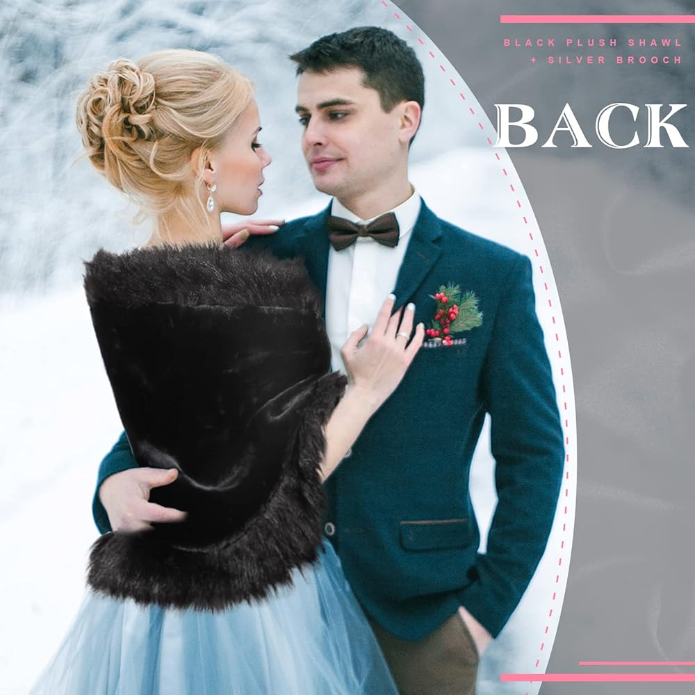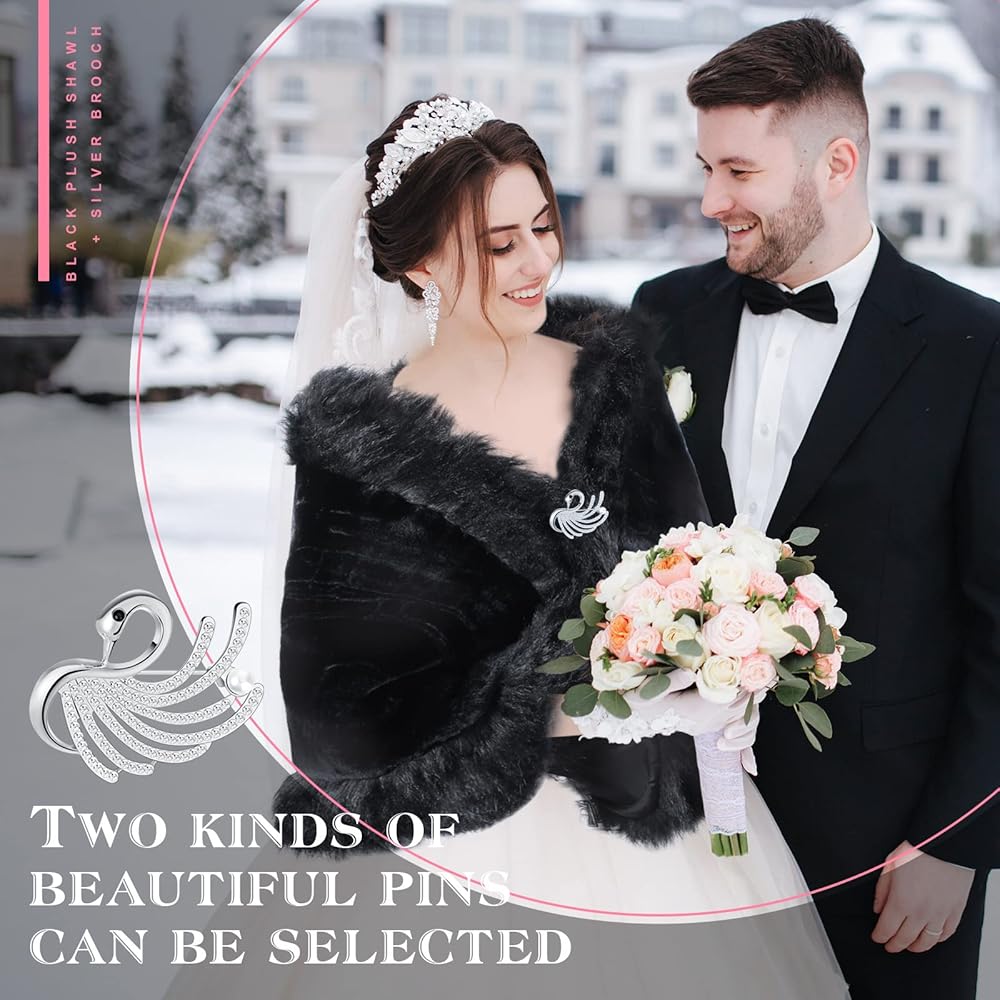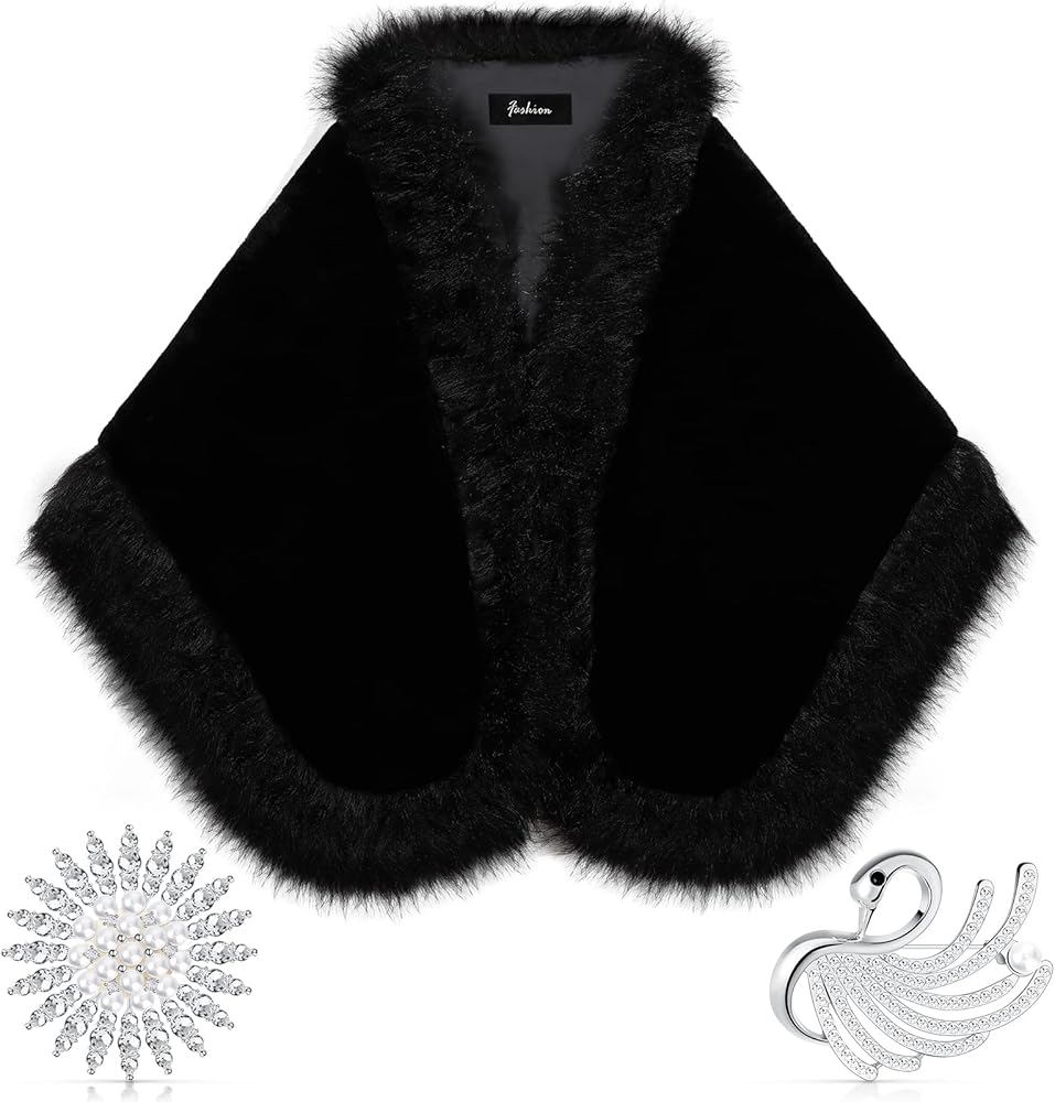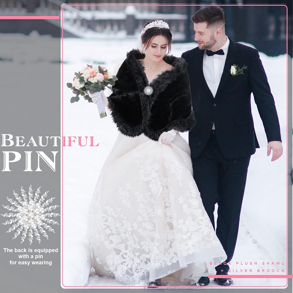 What You Get: you will receive 1 piece classy wedding fur black shawl and 2 different designs of pearl and rhinestone silver brooches; They can be randomly matched to make you look more refined and beautiful, you will get compliments from many people at a party