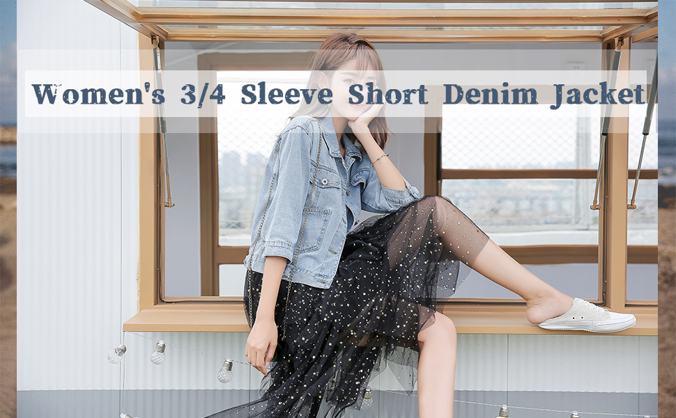 - Women's cropped denim trucker jacket, fashion and vintage, suit for spring, summer and fall.