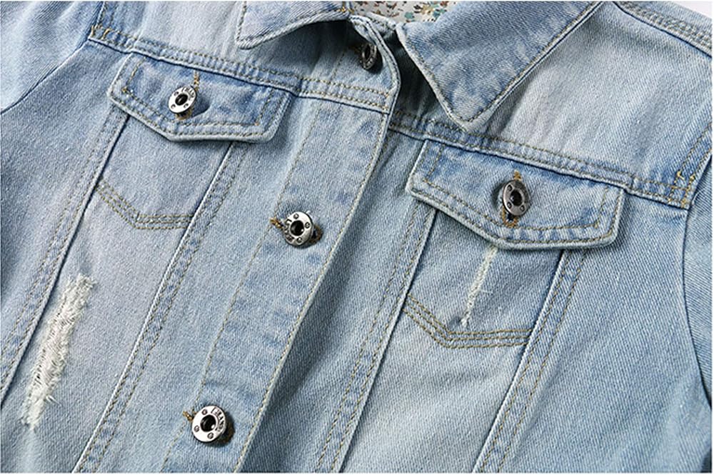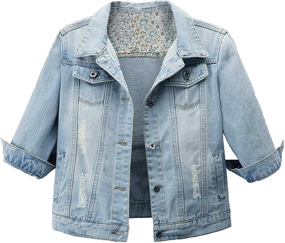 Songling Women's 3/4 Sleeve Short Denim Jacket Ripped Distressed Jean Coat