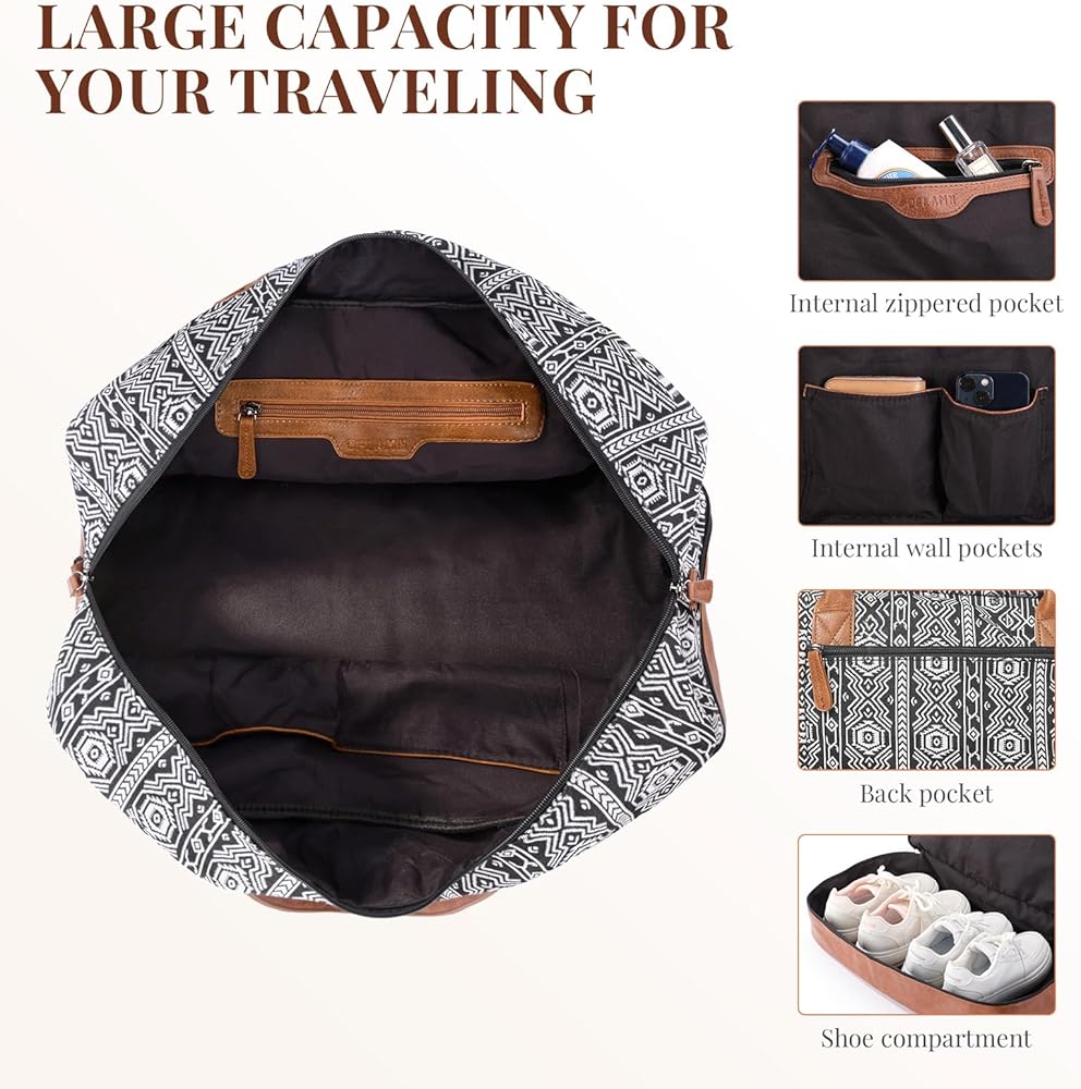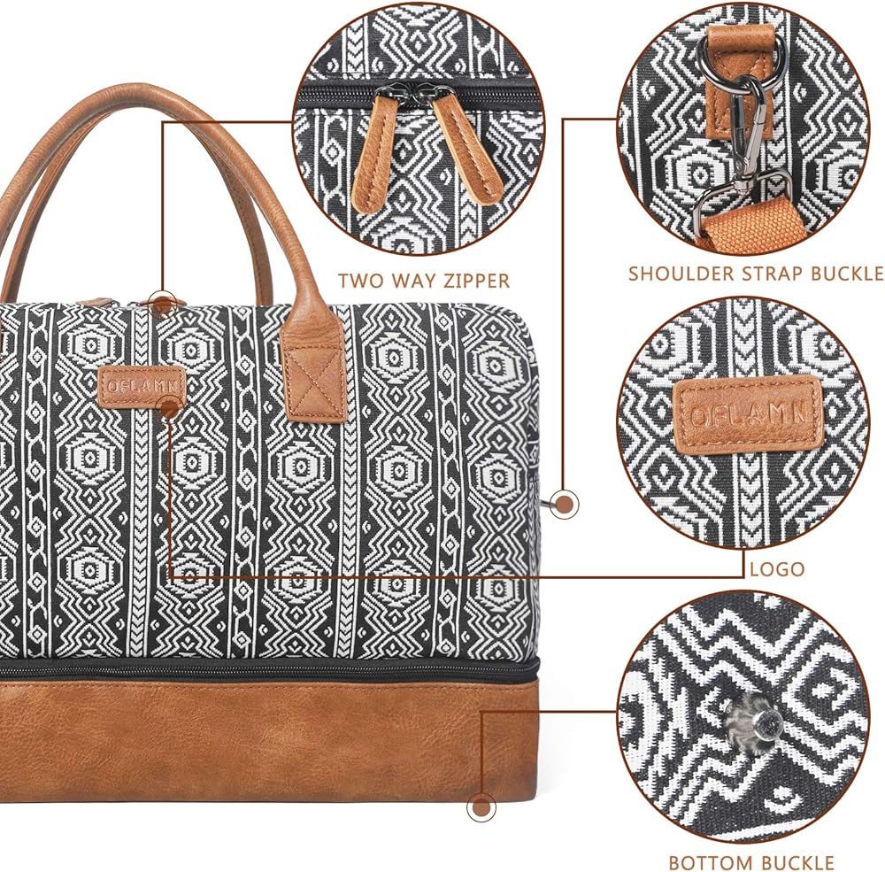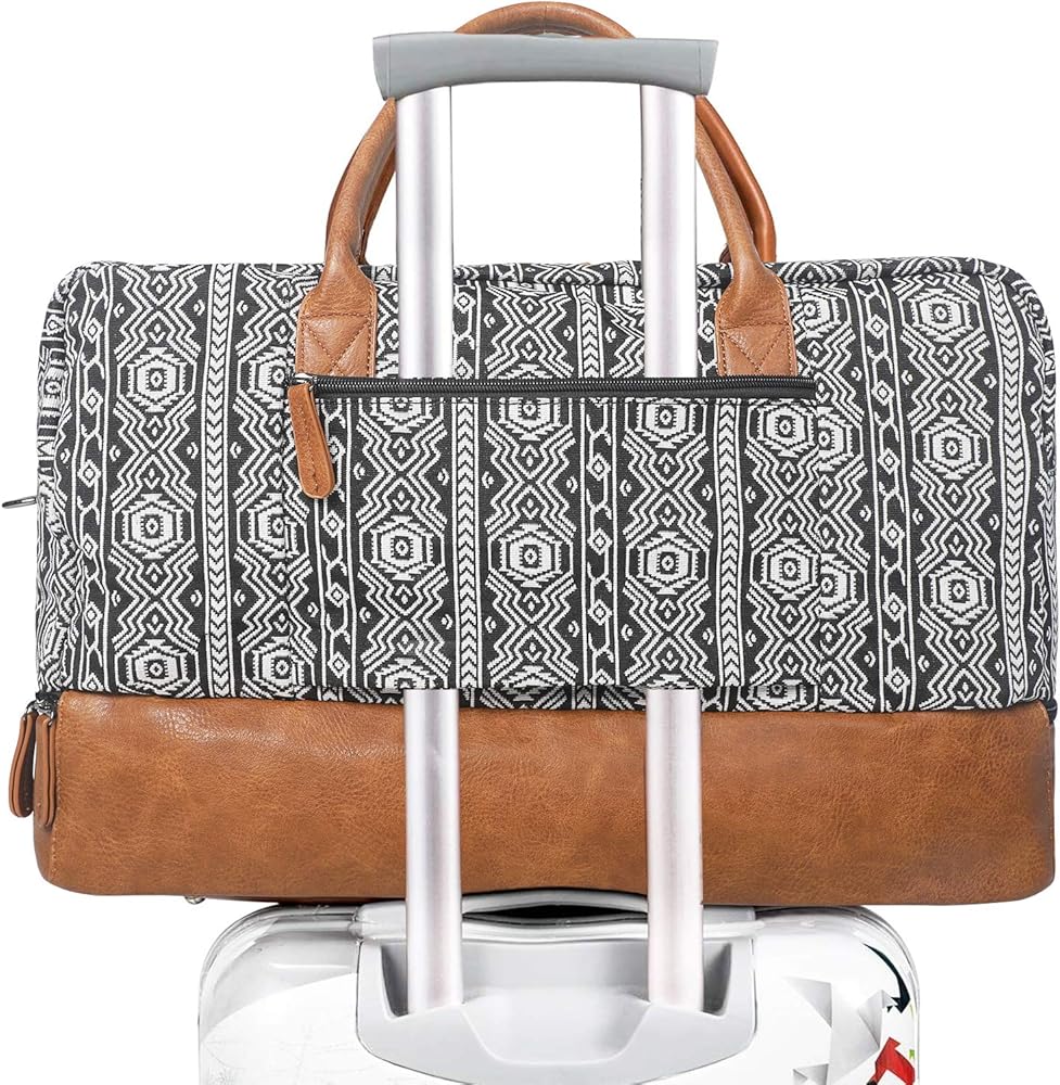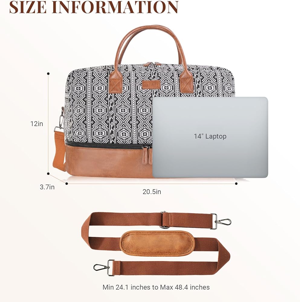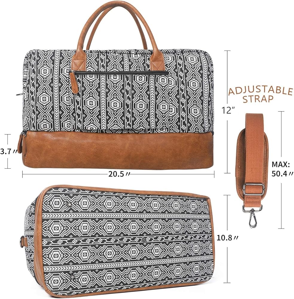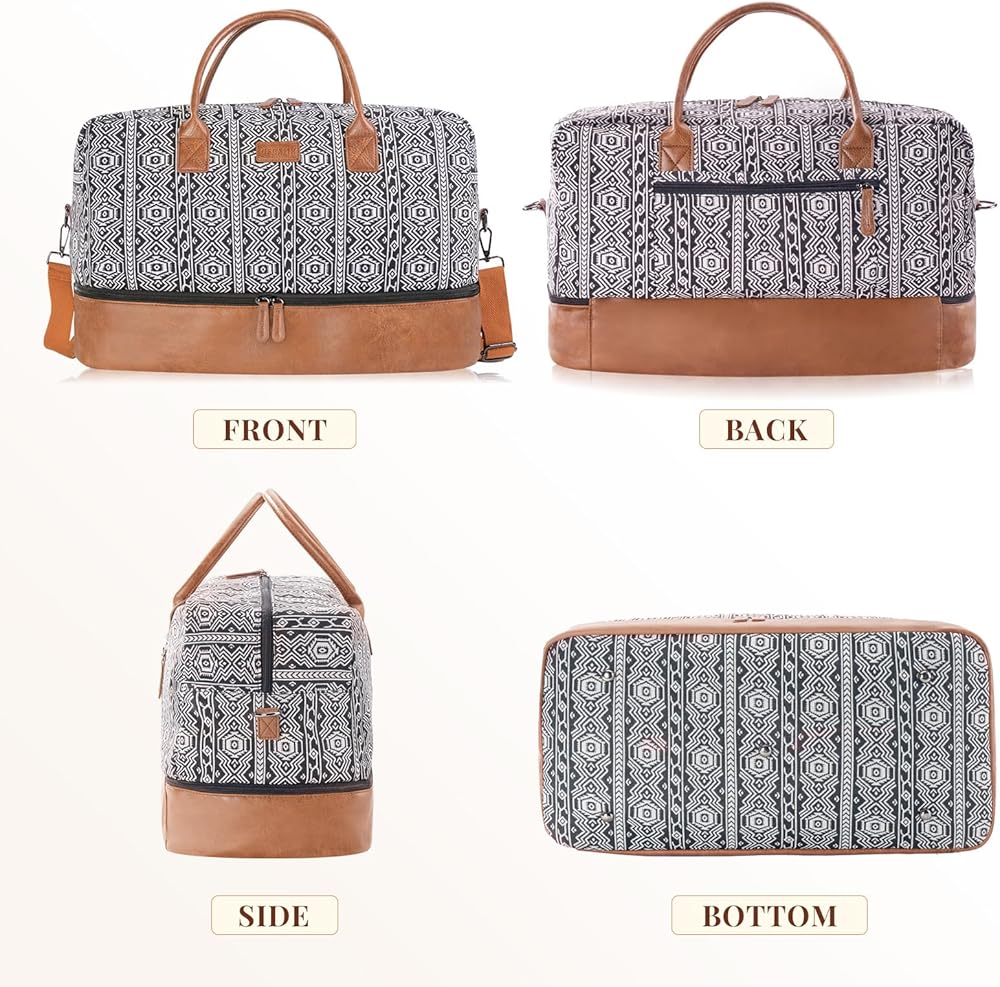 Crafted with Care - Our Bohemian soft canvas and PU leather shoe pockets make this weekender bag a stylish and practical choice for your travels. The addition of a luggage sleeve and removable strap ensure easy carrying wherever you go.