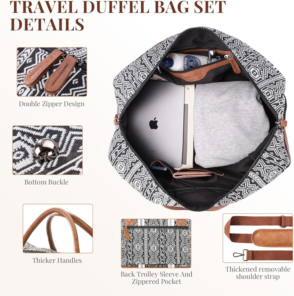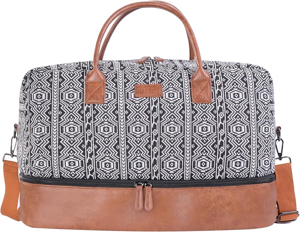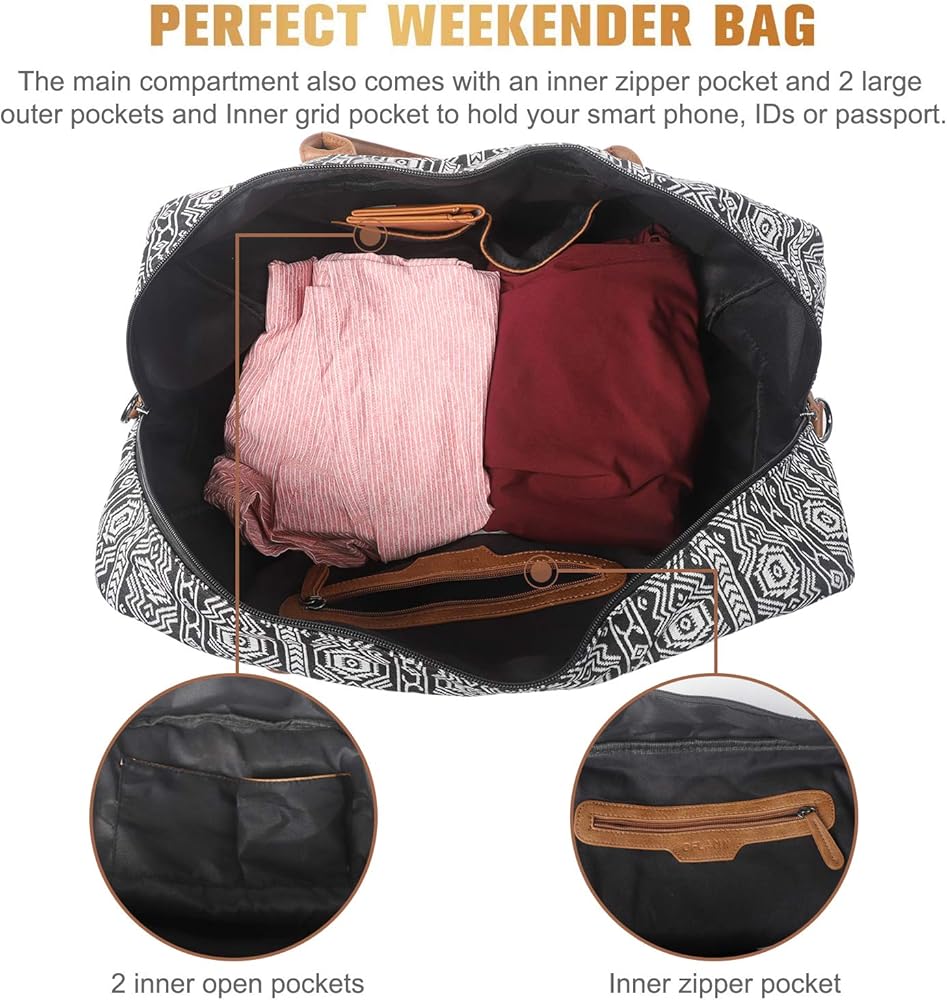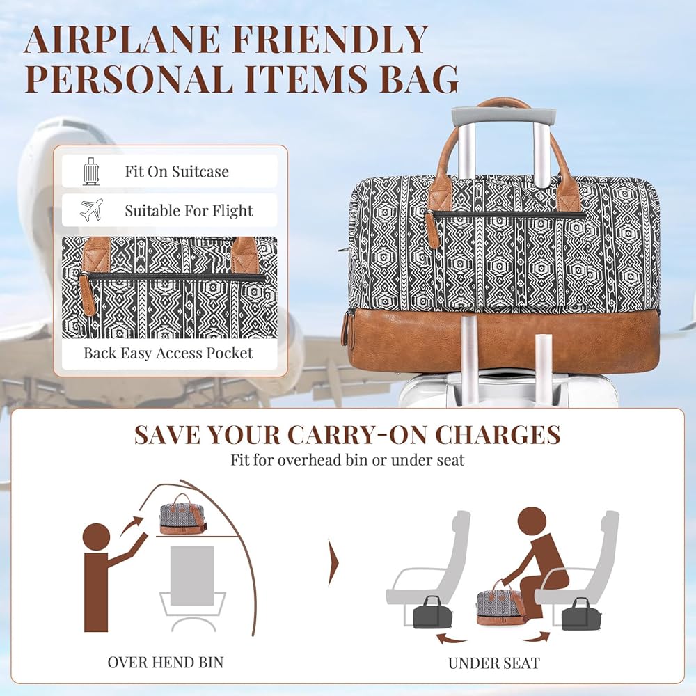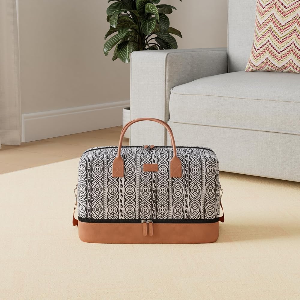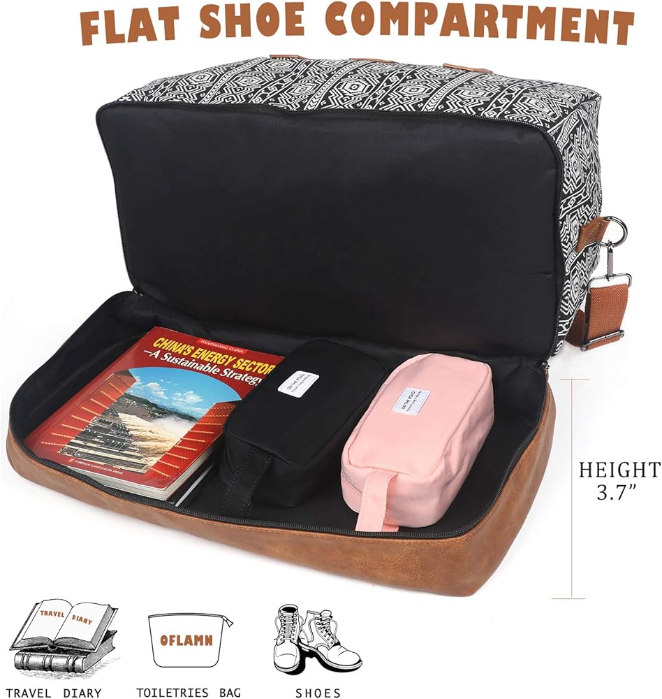 Crafted with Care - Our Bohemian soft canvas and PU leather shoe pockets make this weekender bag a stylish and practical choice for your travels. The addition of a luggage sleeve and removable strap ensure easy carrying wherever you go.