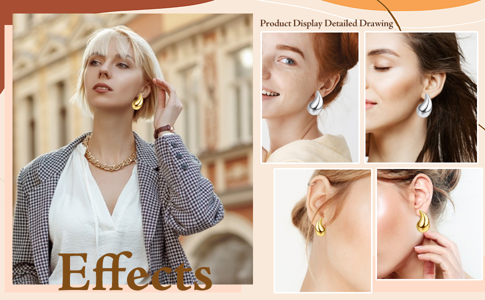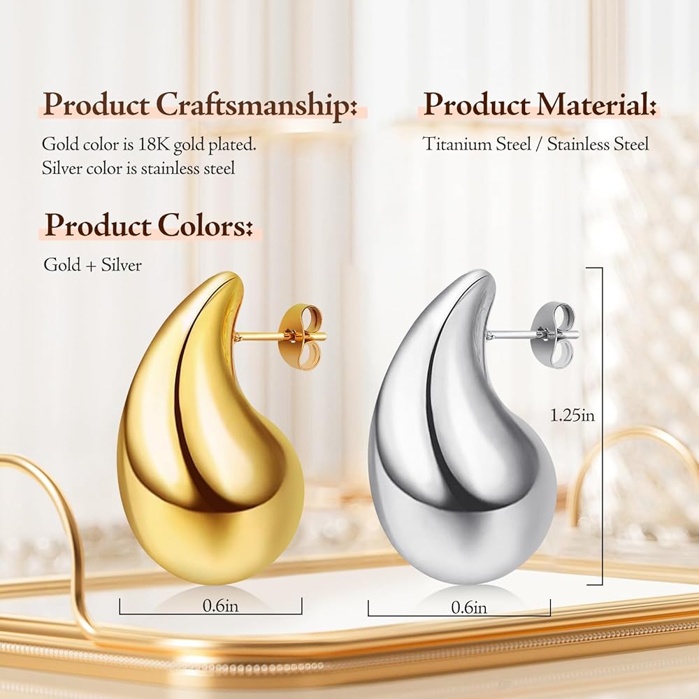 HIGH QUALITY MATERIAL: This women's tear drop earring is made of high-quality stainless steel material, plated with 18K gold, laser spray welded, hand polished, low allergenic, and showcases a classic and timeless design in the shape of water droplets, complementing any outfit on any occasion. The carefully selected materials ensure durability and comfort, allowing you to wear these earrings all day without any discomfort or irritation.