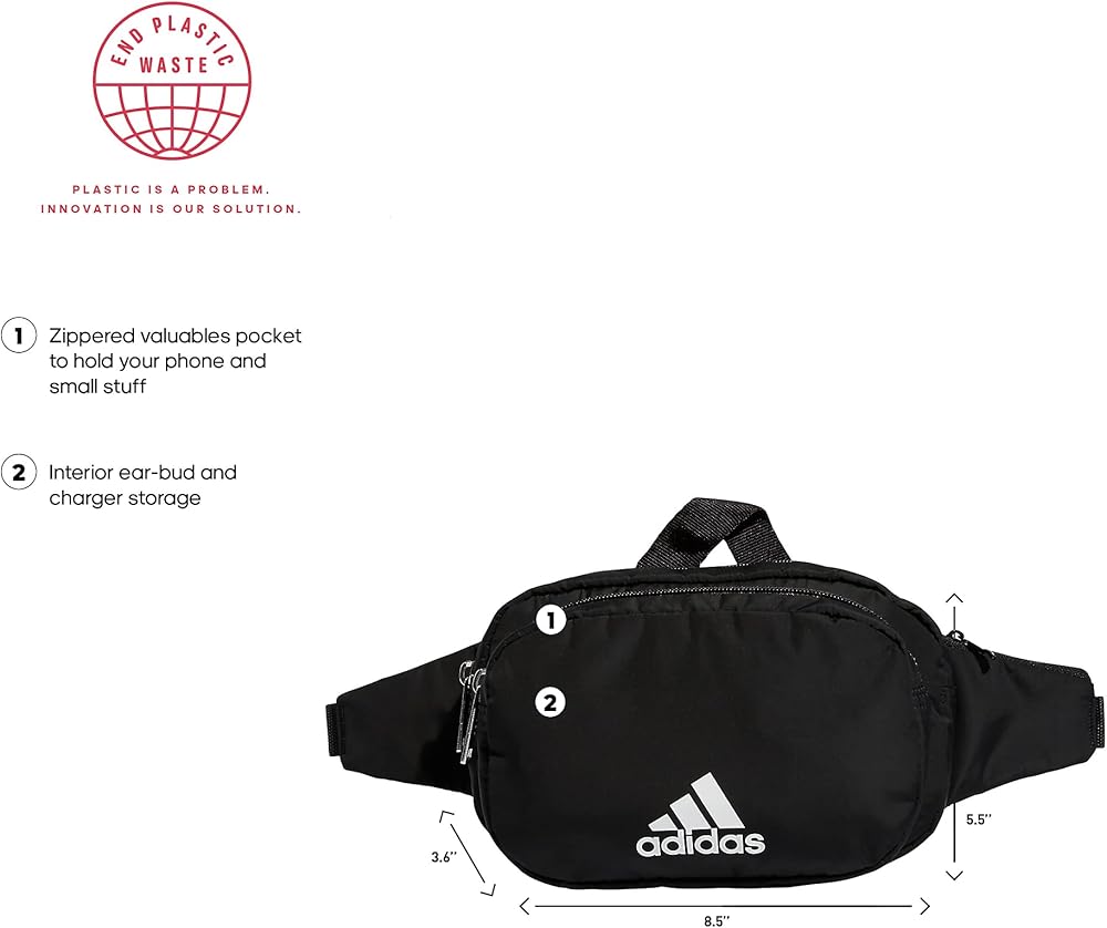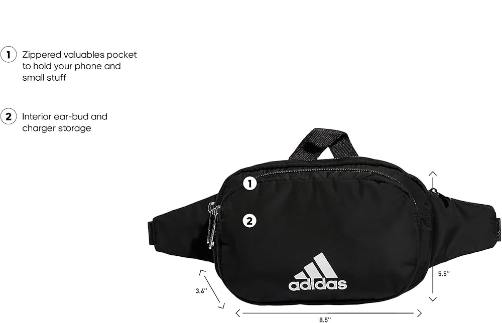 For days when you want to travel light, this adidas waist pack keeps your essentials close and your hands free. a zip compartment and small zip pocket hold your keys, phone and cards. the adjustable webbing strap lets you wear it around your waist or as a crossbody bag.