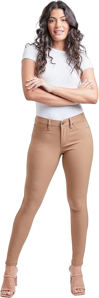 Five pocket hyper stretch mid rise skinny jegging. Features back non flap pockets, single button and zip closure, and super stretchy fabrication.