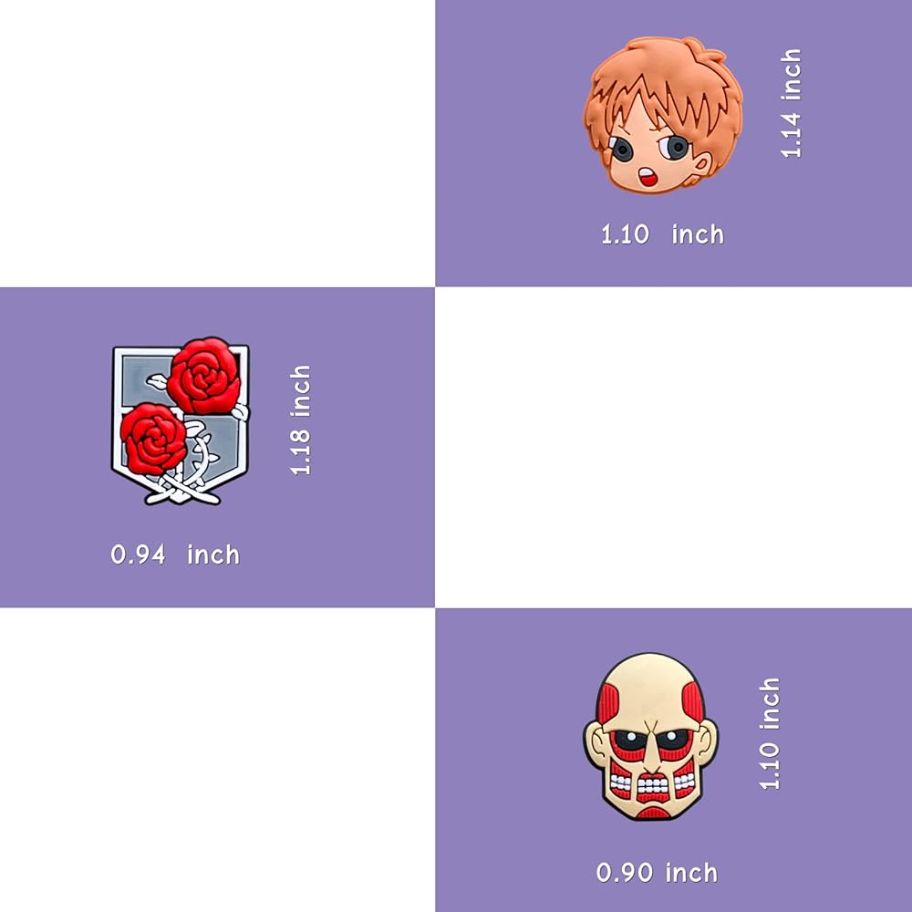 【EASY to USE】Each japanese anime decorations for shoes button diameter is 0.47in, which is very compatible with croc. The buttons and the body parts are glued very tightly, not easy to fall off.