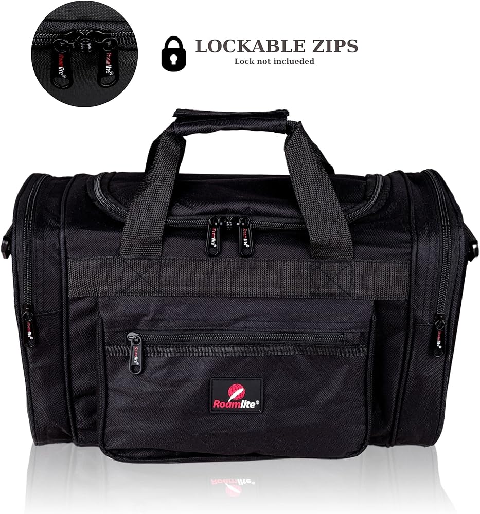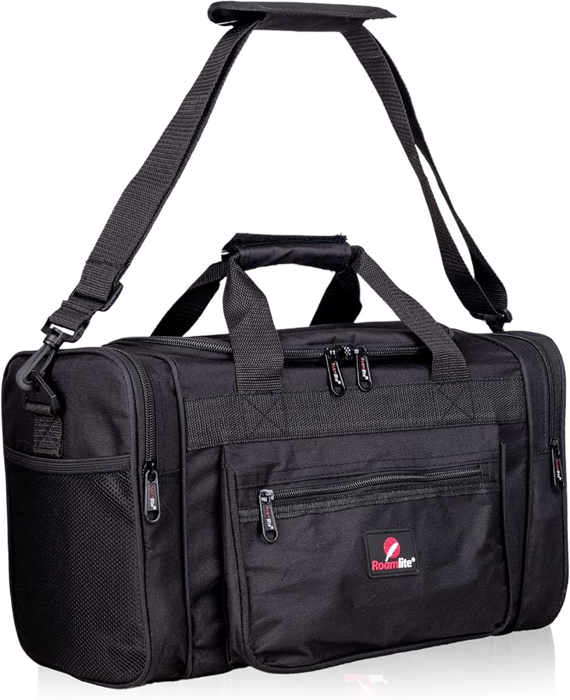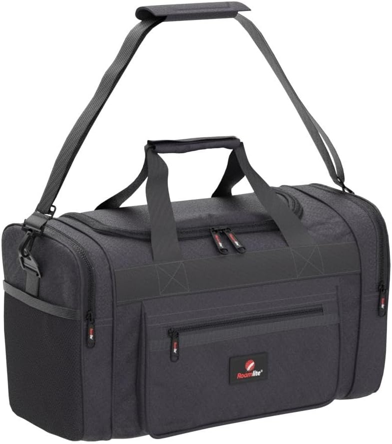 Roamlite United Airlines Personal Item of Hand Luggage Size Cabin Approved Travel Holdalls, Small Carry On Duffel Bags - 15 inch x10x8, Waterproof Polyester 20 Litre RL59K (Black)