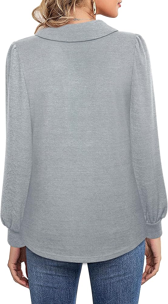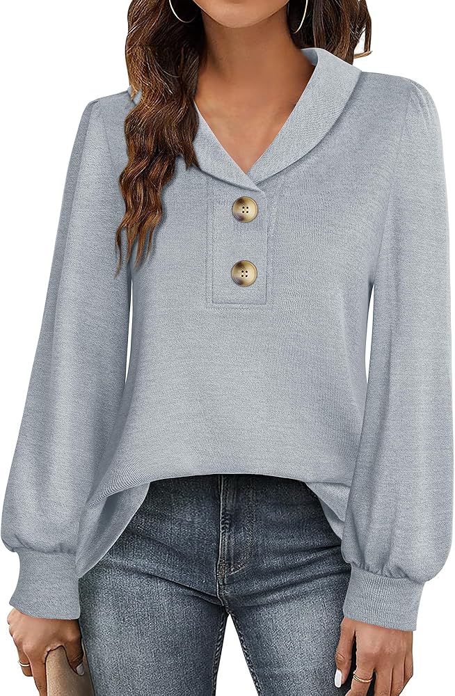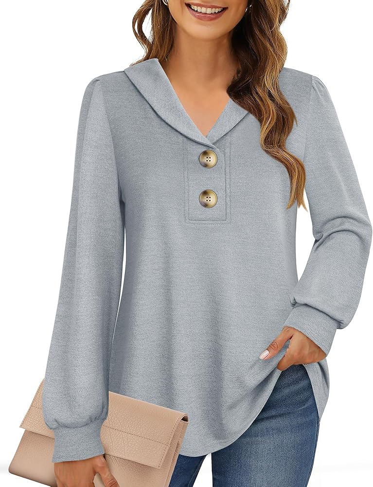 【Feature】Our Women's V Neck Tunic Shirts feature shawl collar with a 2-button placket,pleated puff long sleeve,curved hem and Loose Fit.The special collar V neckline form a business casual look while allow showing your glamorous collarbone.The ample looseness of the sleeves provides a comfortable and unrestricted wearing experience.Curved hem and loose fit make it suitable for all body shapes.All these details highlight your elegance,and make you more beautiful and charming.