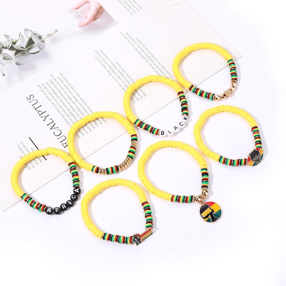 Heishi beaded bracelet set features SEVEN strands multicolored polymer clay vinyl discs bracelet adorned with gold beads ,they're set in a stretch cord to effortlessly slip on and off as you go about your day. Wear them stacked together or one at a time.