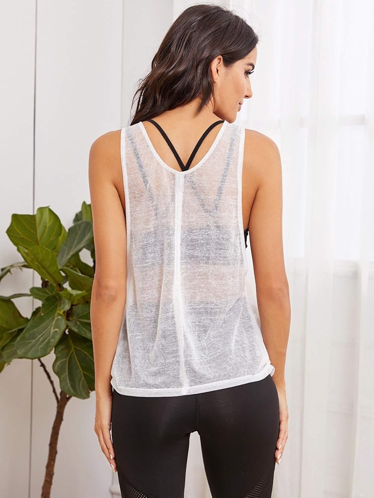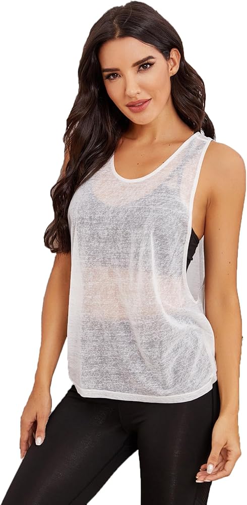 SweatyRocks Women's Sleeveless Scoop Neck Shirt Contract Mesh Racerback Tank Top