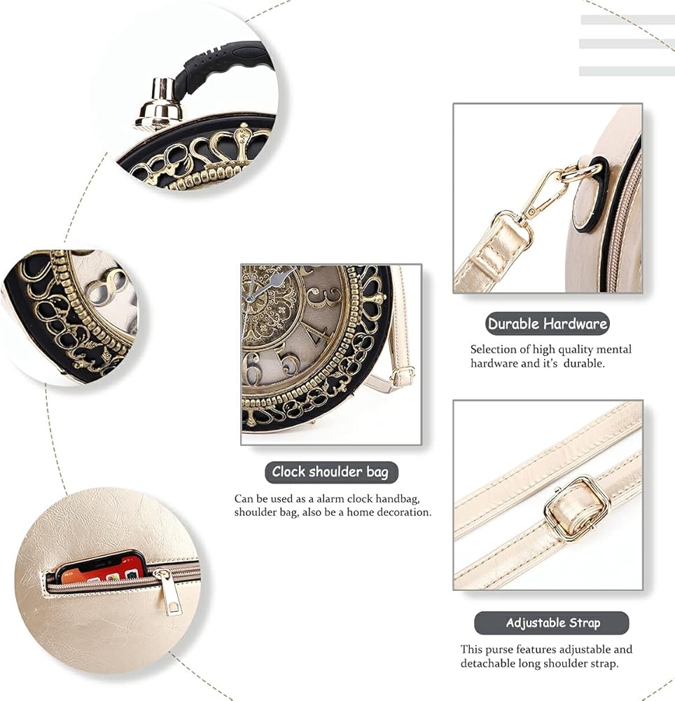 IDEAL GIFT: This is a fashion women cross body bag for your daily life. It is perfect as Mother's Day gifts and perfect for dating, work, shopping, travel or any other daily occasions. It Can be used as a clock purse or a home decoration (This product does not contain battery) ,Comes with 6 MONTH warranty.