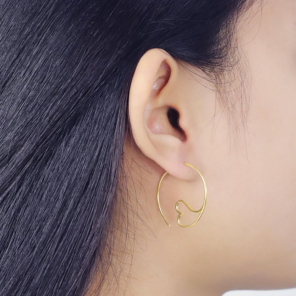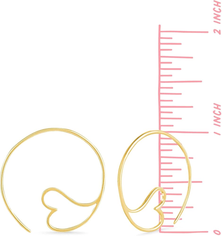 Delicate pull through threader earrings with open heart design and high polish finish. Lightweight and easy to wear backless slide thru design. Handcrafted by artisans in ethical and sustainable sterling silver. Earrings include rubber stoppers.