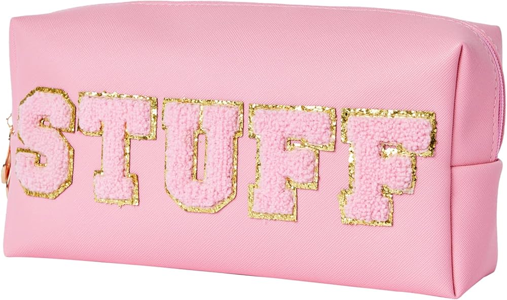 💄Beautiful and Elegant Design: The preppy stuff bags adopt soft white and pink color, and has a big “STUFF” letter with gold trim is stuck in the middle letter in the center. It exudes an overall sophisticated and refined look.