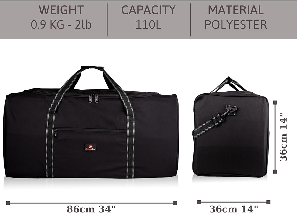 ROOMY 110 LITRES MAXIMUM CAPACITY - NO WASTED WEIGHT - Unisex for men and women for carrying or storing the largest amount of clothing. Ideal to put winter clothes into storage in the loft or to use as second fold-away or pack-away bag for extra holiday shopping. It folds flat and in half for easy storing.