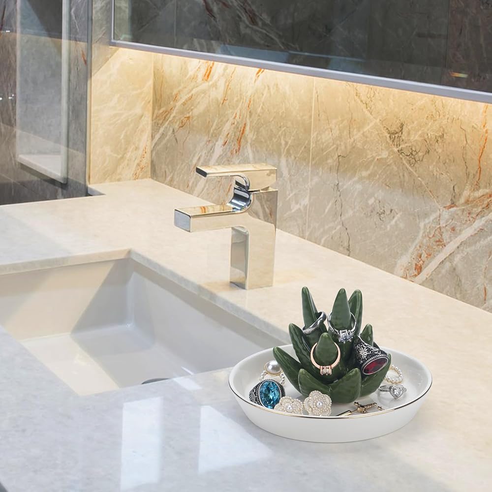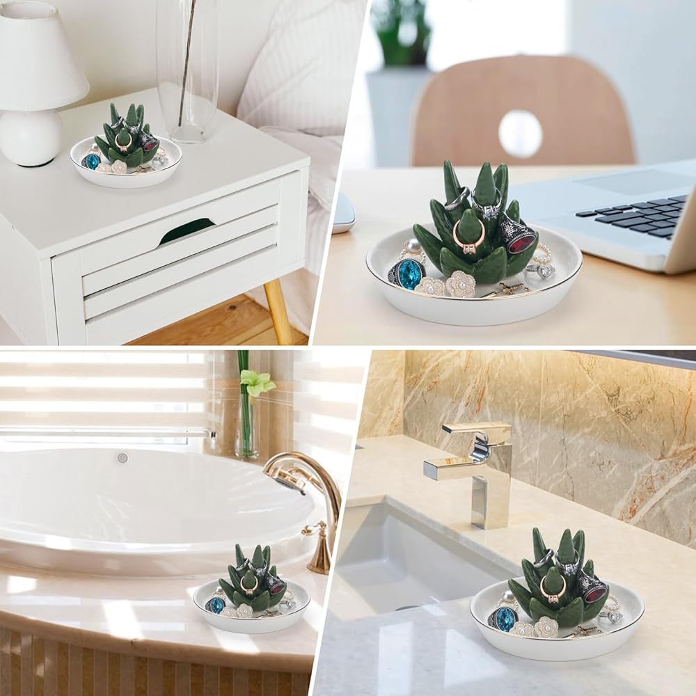 FUNCTIONAL GLAZED CERAMIC JEWELRY DISH - Place ring holder dish in your bathroom, the perfect place to put your necklaces, earrings, bracelets and bangles. Place it by the sink to collect your rings while you wash your hands, or put it on your bedside table to hold your rings while you get ready for bed. The ring stand is a great eye-catching elephant decor too!