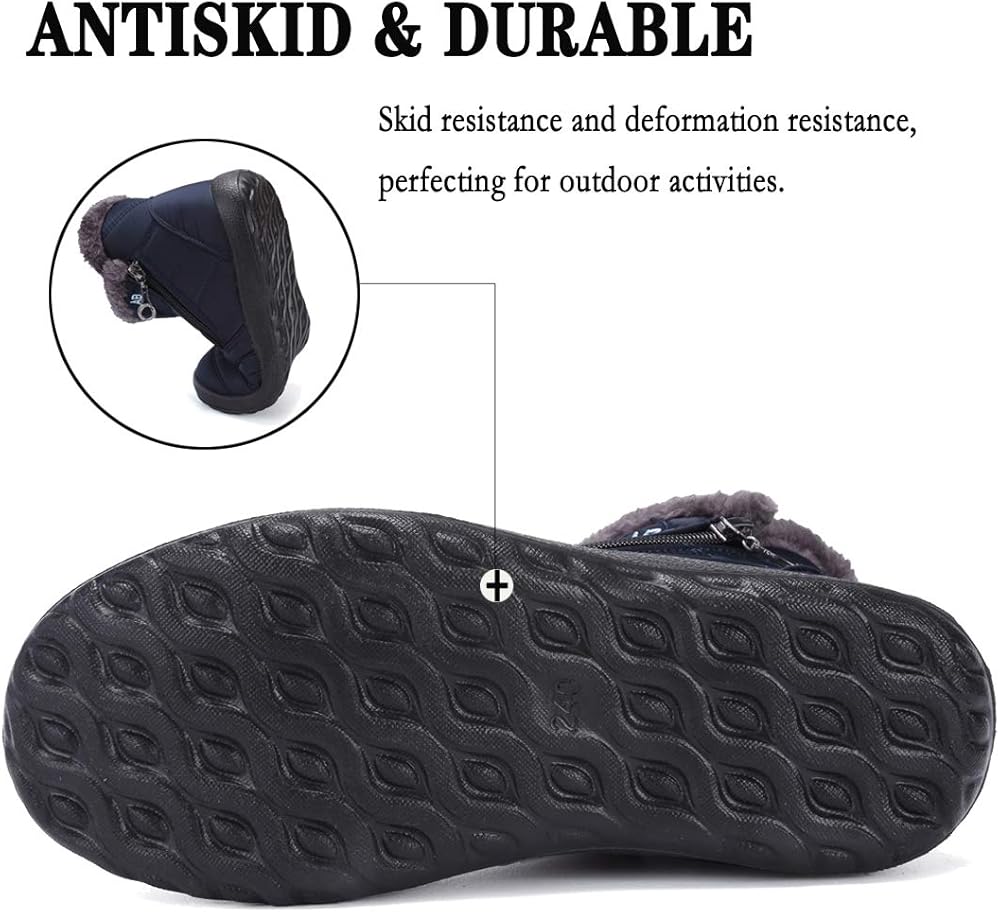 【Comfort & Warmth】 Featuring cozy and thick fur-lined inside plus the adorable fur-trimmed top line. Fine fluffy wool covers the inside of the winter boots that make sure enough temperature to wrap your feet in warmth like a toasty quilt and offer cozy and toasty experience on your feet.