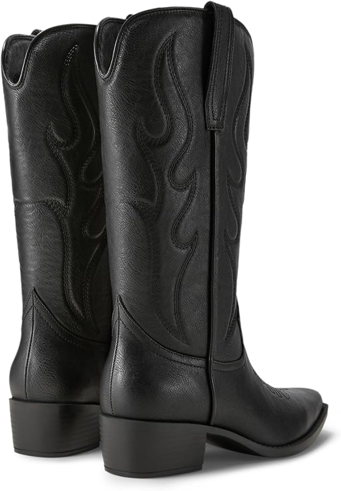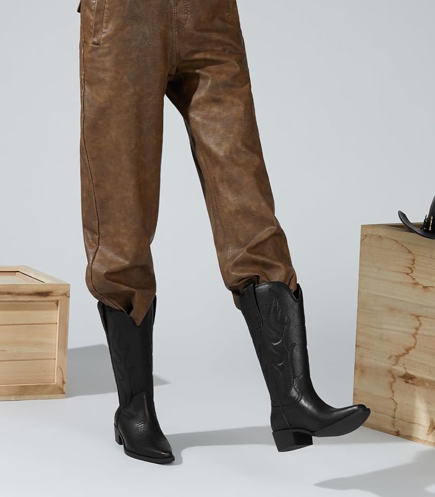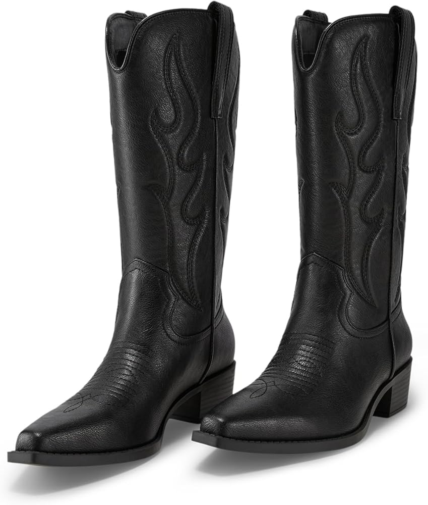 To style Western trend, every cool girl need a pair of calf high cowgirl boots, cause it has magic and can go with lots of outfit: dress, skirt, demin jeans, skinny jeans, blazer, and etc.; perfect to dress them up for some theme events, such as country concerts, music festival, wedding, dancing party or bachelorette party, or daily casual wear to office, shopping, dating, travel even onstage.
