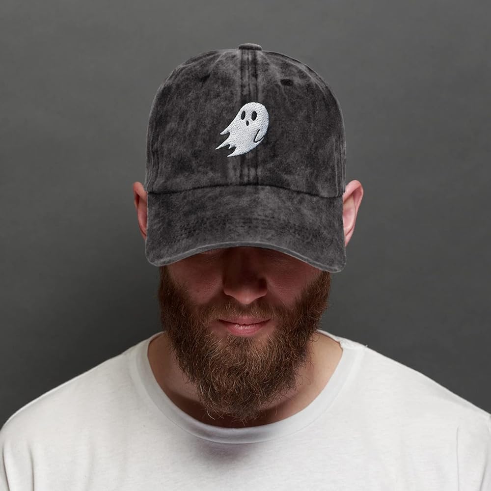 Halloween Cute Ghost Baseball Cap Hats for Men Women Cool Emo Gothic Goth Perfect Best Grunge Spooky Witch Graphic Birthday Presents Vintage Dad Trucker Hat Black