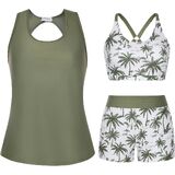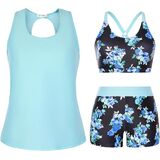👙3 Piece Tankini Swimsuits: swim tank top + sports bra + boyshort. Modest 3 piece bathing suit provide a playful range of combination, make it charming and cute for you on the summer beach.