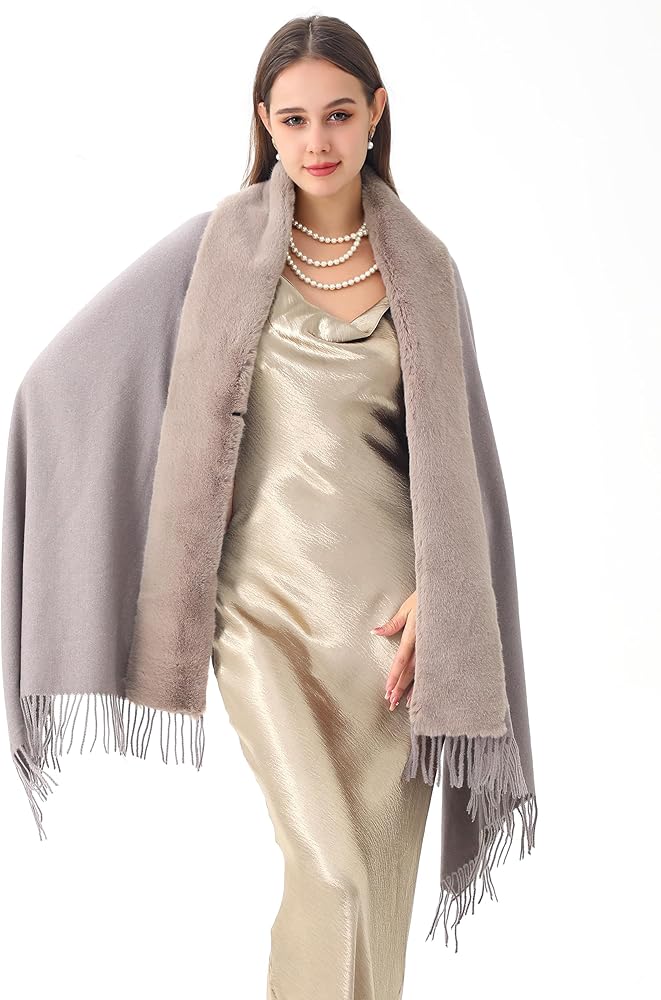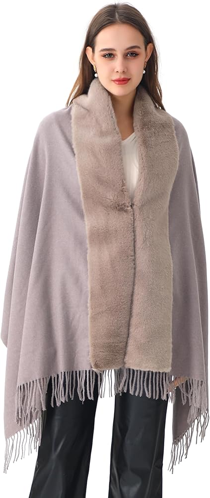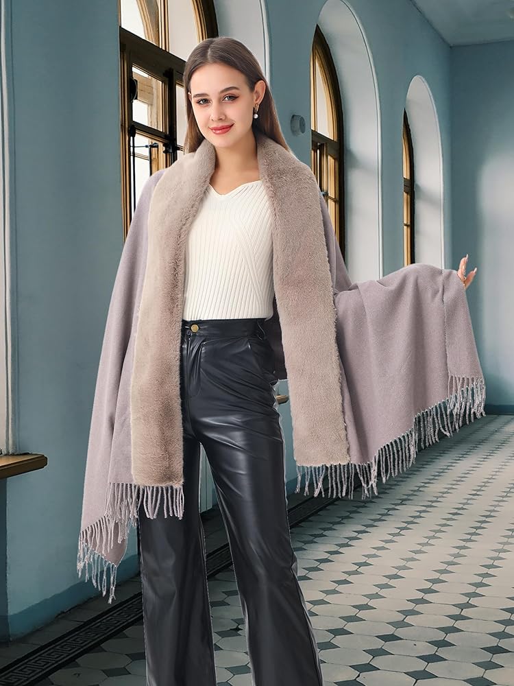 FUR COLLAR DESIGN:This winter shawl wraps for women is designed with a unique fur collar, which can make people warmer and more advanced. At the same time, there is a hidden button in the position of the fur collar, which helps not to fall off when wearing, and it is more beautiful