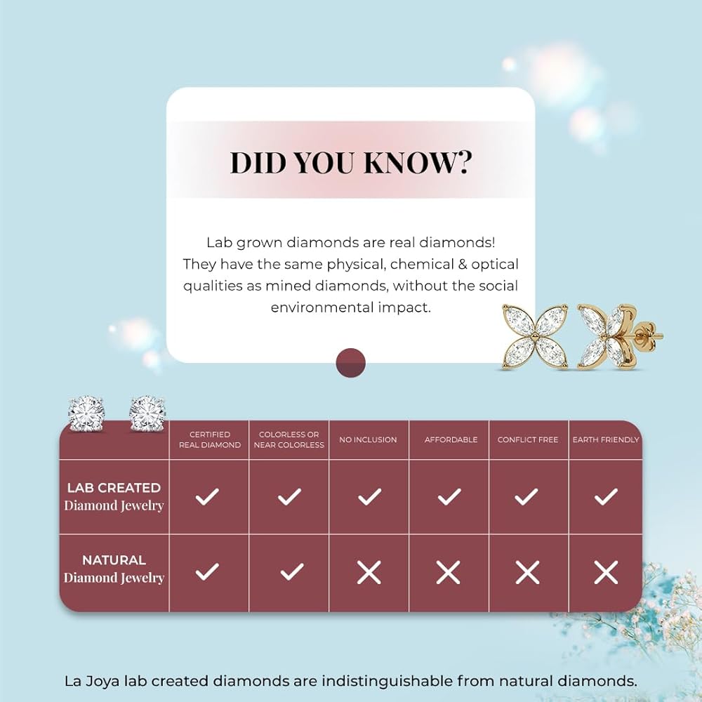 Lab Created Diamond Earrings Have The Same Chemical And Physical Properties As Real Diamond Earrings But Are More Sustainable Due To Lower Emissions, Resource Usage And No Excavations. Notably They Are Cruelty-free And Do Not Fund Wars