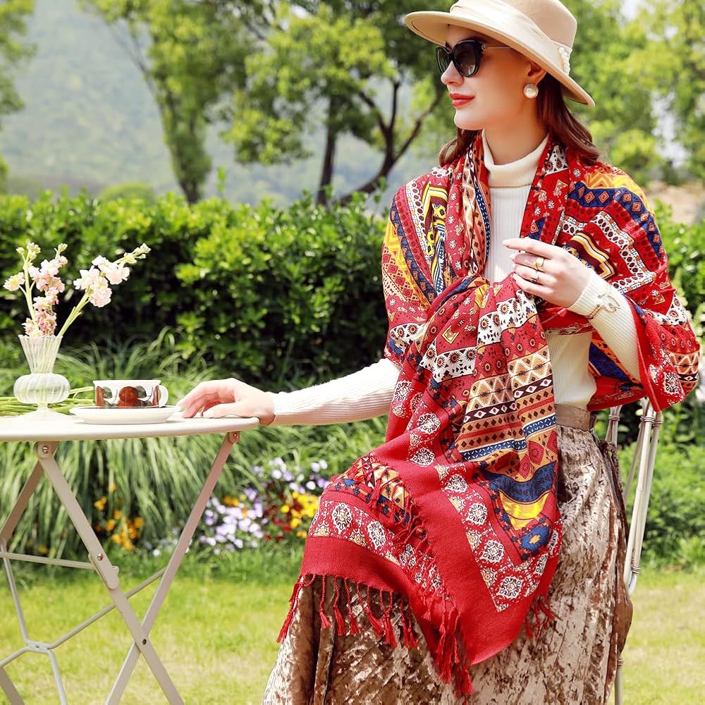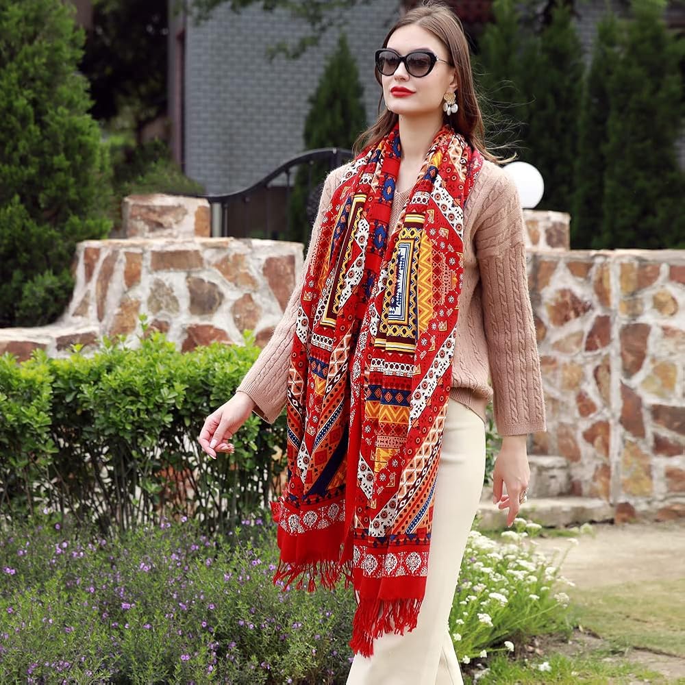 ✅التصميمات: وشاح الشتاء هو نمط فريد من نوعه من مصممين ممتازين، وتصميمات بيزلي فاخرة بألوان زاهية عن طريق الطباعة اليدوية.