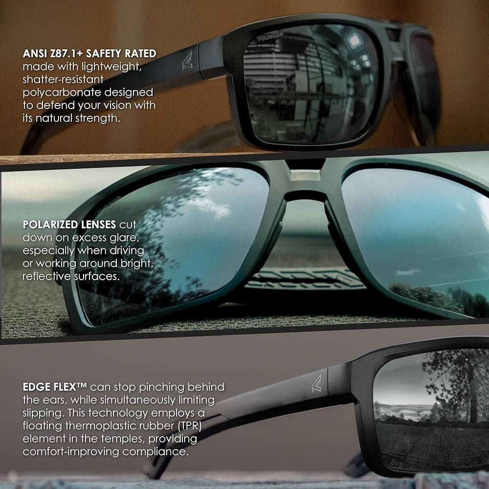 - Polarized Technology – Edge's men's polarized sunglass lenses block 99.9% of UVA, UVB and UVC rays, keeping your eyes protected from the elements.