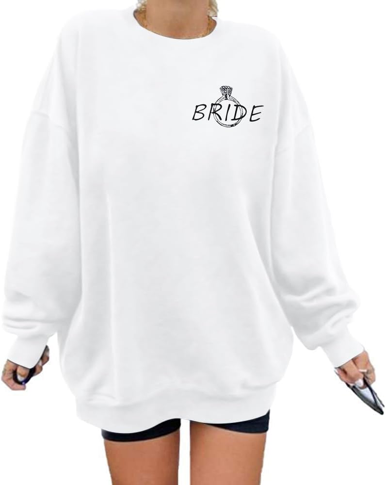 Occasions: Bride letter printed Sweatshirt perfects for bachelorette, honeymoon, family vacation, family party, work, outdoor, hiking, shopping, walking, hanging out, travel, carnival, beach, club, procession, wedding theme party, dating, shopping and summer camp, hiking, Perfect to pair with Your Favorite jeans, shorts, leggings or skirts.