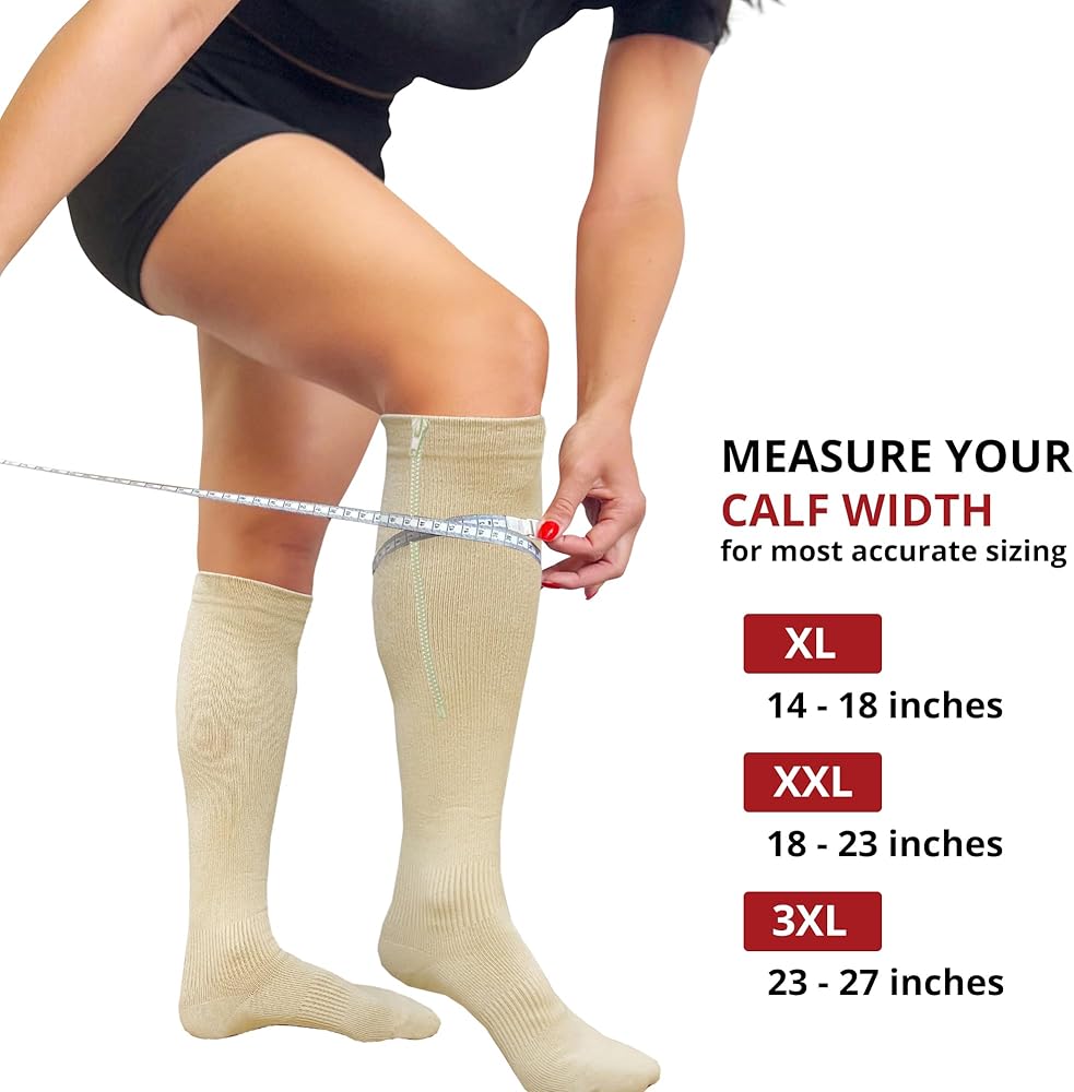 【MADE FOR PLUS SIZES EXTRA WIDE CALF】- Finally! Zipper compression that is comfortable and supportive for plus sizes (XL to XXXXXL) up to 40 inch extra wide calf. True graduated compression and precise gradient pressure compresses from the ankle up the leg for maximum blood flow and reduced swelling. Check the size photo for the best fit!