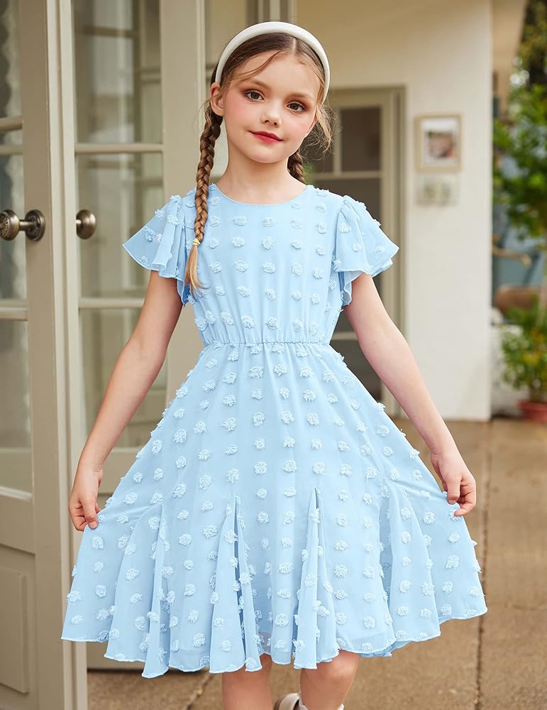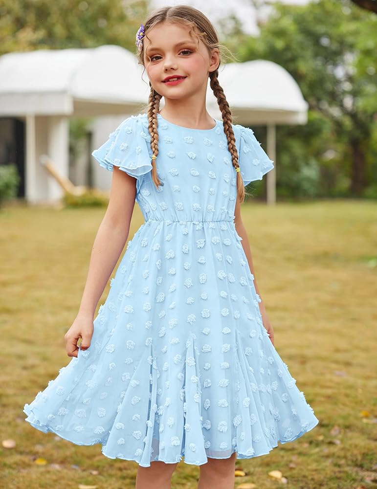 Twirly Dress for Girls:Stylish and unique design for your girls. Girly Ruffle Sleeve, Flowy Hemline, Above Knee Length.make your girl become the most dazzling presence in the crowd