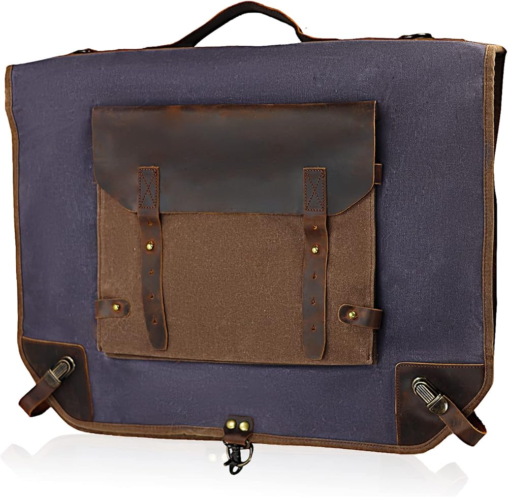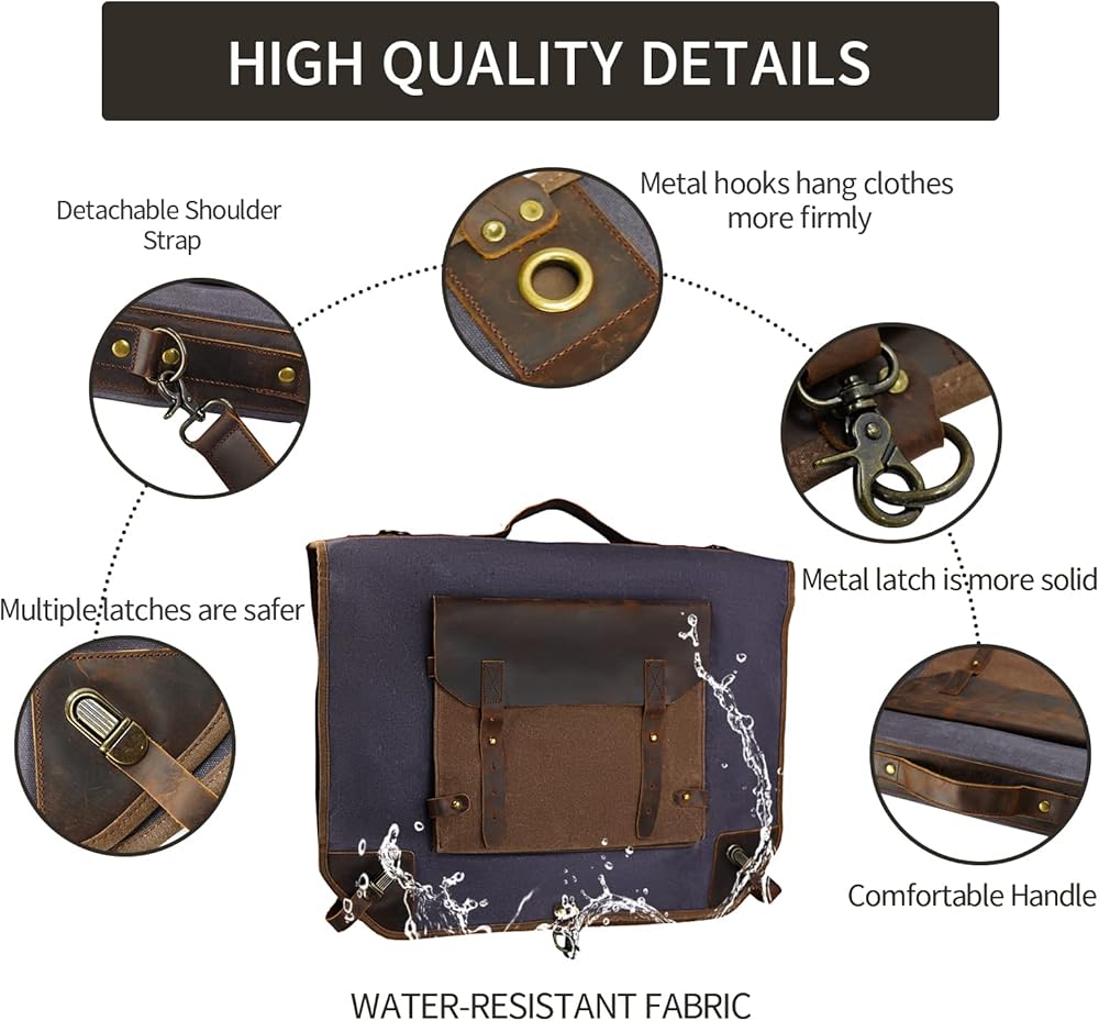 Waxed Canvas Leather Suit Luggage Garment Bag with Shoulder Strap for Work and Business