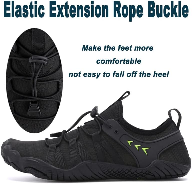 [Unique Five Toes Design]--The water shoes for men,The anti-slip rubber sole, with an ergonomically molded, shock absorption performance cushioning separated protective toe guard.Excellent workmanship to prevent the seams around the toes fray and split within a short time.