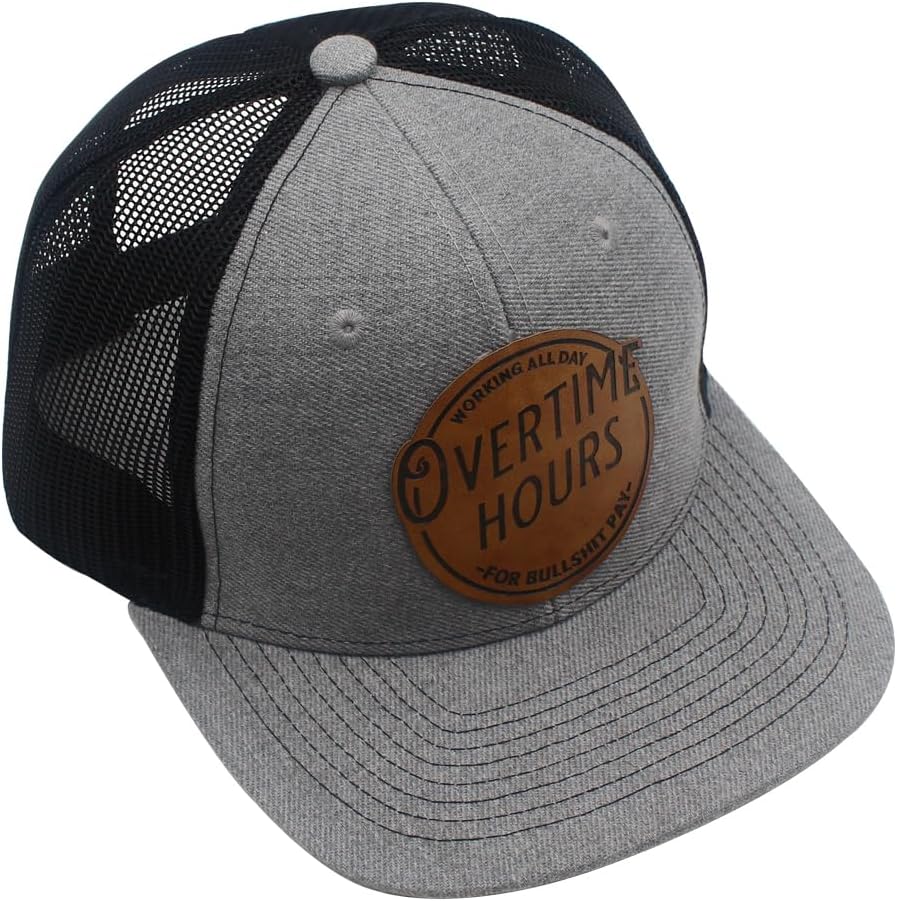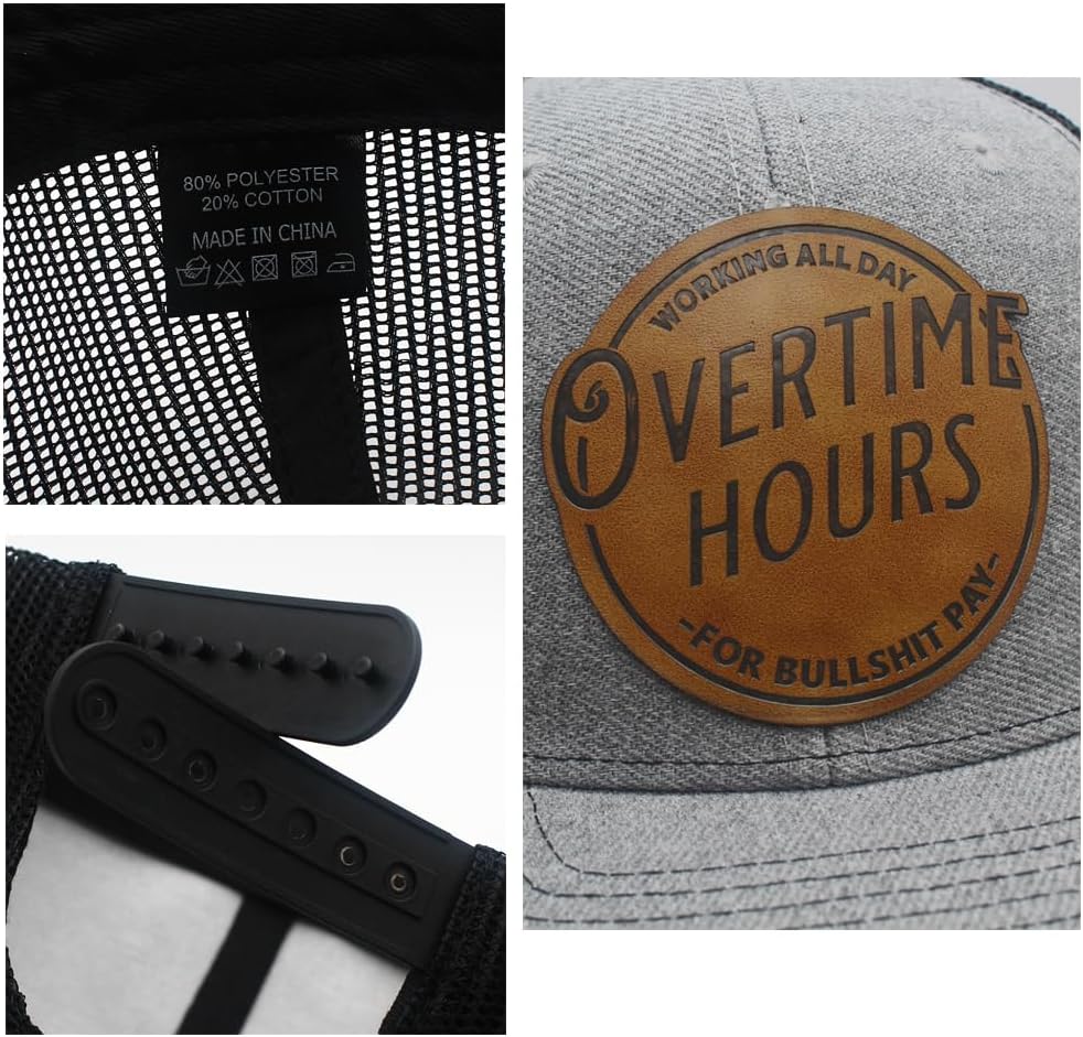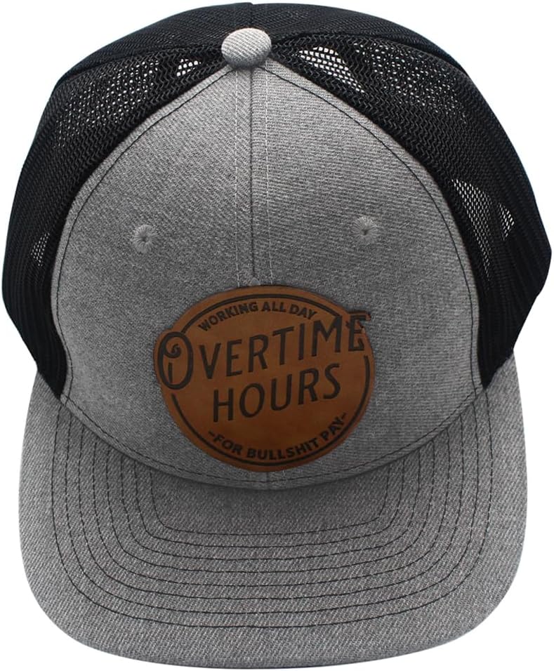 Working All Day Overtime Hours for Bullsh!t Pay Leather Patch Trucker Hat Baseball Cap