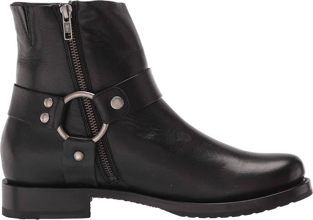 "The Frye Company For more than 153 years, Frye craftsmen have been dedicated to the art of shoemaking, creating modern patterns, discovering materials and even inventing machinery. Rooted in authentic American heritage, The Frye Company uses the best leathers, designs and innovations in the pursuit of timeless, artisanal style. Frye boots were worn by soldiers on both sides of America's Civil War, soldiers in the Spanish-American war, and by Teddy Roosevelt and his Rough Riders. When homesteading drew adventurous New England families to the West during the mid and late 1800's many of the pioneers wore Frye Boots for the long journey. Today Frye remains true to its roots with its line of heritage boots, but continues to innovate as it introduces chic new handbags, pumps, and sandals to its collection. Frye's mission, to make iconic leather goods that endure, has remained unchanged throughout its storied history. Veronica Harness Short We're not exactly sure what it is, but there's something about the Veronica style that gives you a boost and well, attitude. Whatever it is, we know magic when we see it. Trust us. Take these harness boots, for example, leather lined with a rubber outsole, they have hand-stitched Goodyear welt soles that are durable and waterproof. The harness is functional with easy snap on/off, rubber lug outsole and top lift for traction, inside zip with a stitch and turn topline."