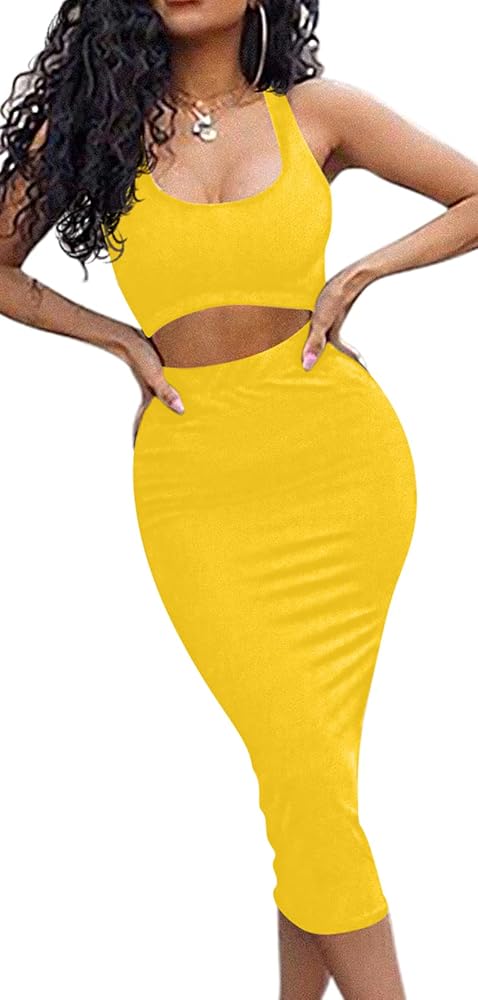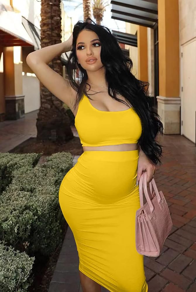 Tank crop top,midi-skirt,two pieces set,solid color
