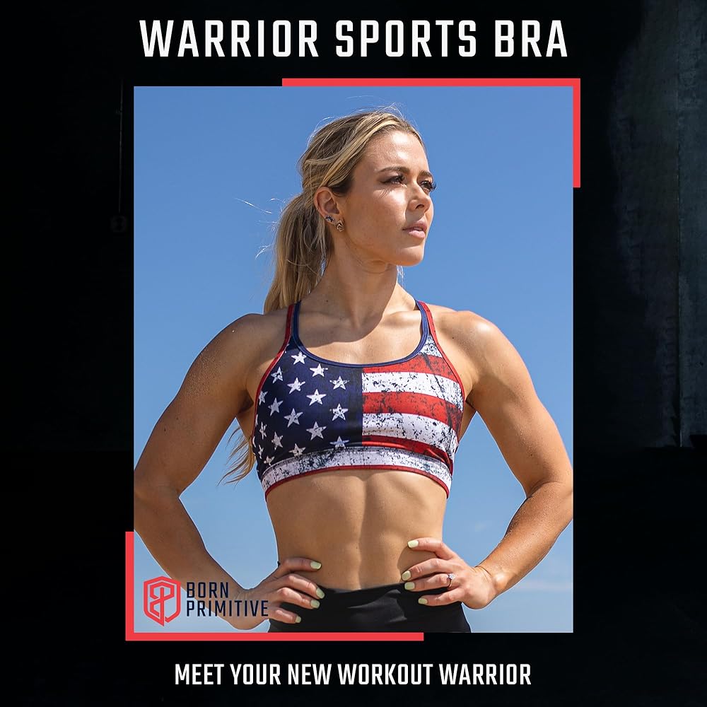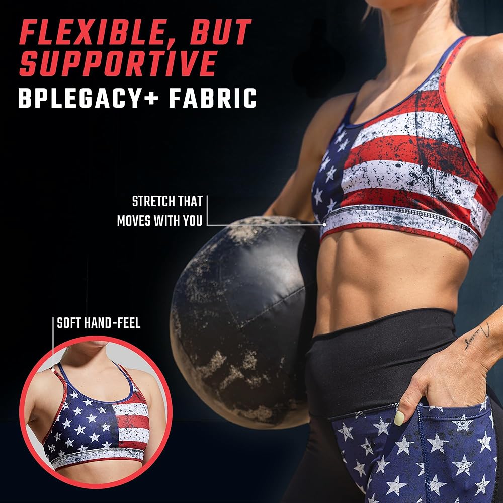 PATRIOTIC SUPPORT: Our Undefeated Edition Warrior Sports Bra proudly displays America's flag in bold red, white and blue; show your support for the country you love with this patriotic workout bra